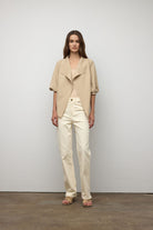Raw edge belted jacket