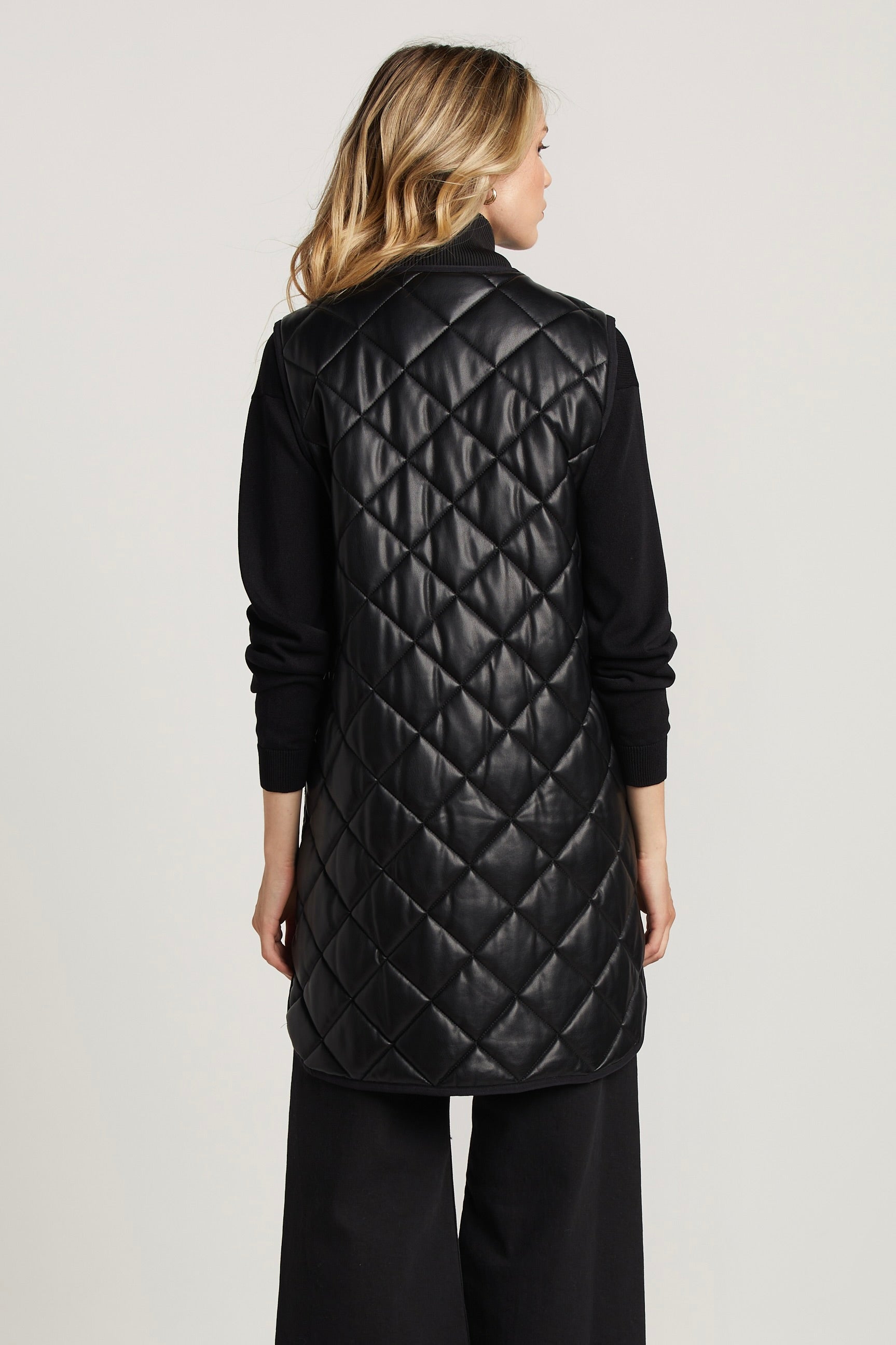 Destiny Quilted Full Zip Vegan Leather Vest w/ Side Zipper