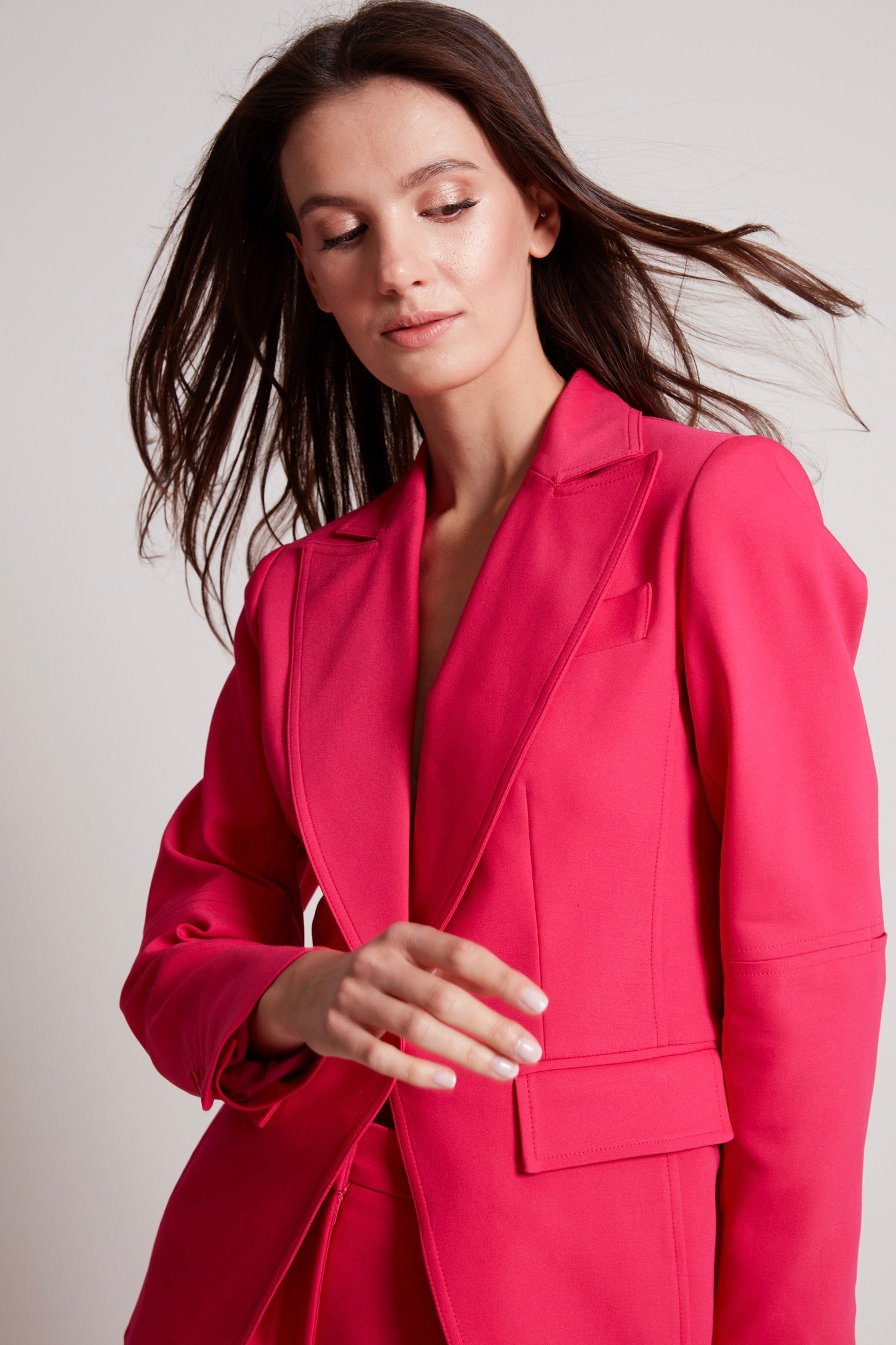 - Tailored collar with wide lapel