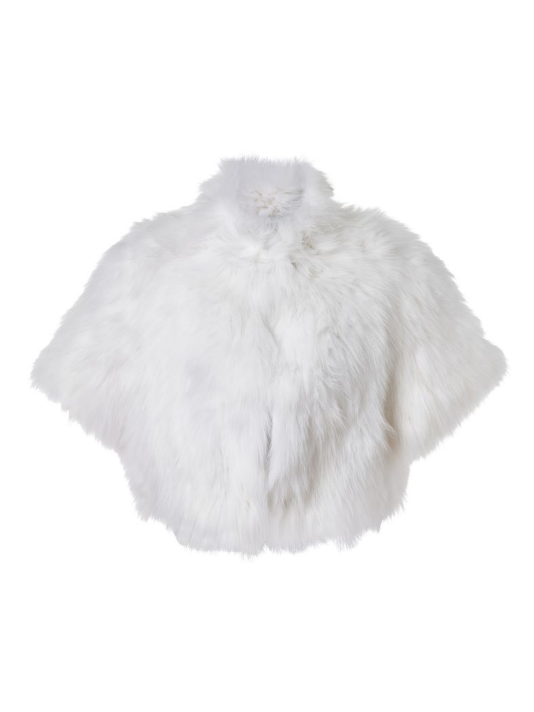 This short bolero, made from fox fur, is both enveloping and incredibly lightweight, making it a pleasure to wear. It features a round neckline and a hook-and-eye fastening. The unlined design enhances breathability, while the minimalist style showcases the knitted fur. Suitable for both day and night, this piece adds a unique and bold touch to any outfit.