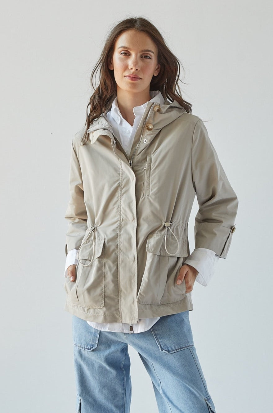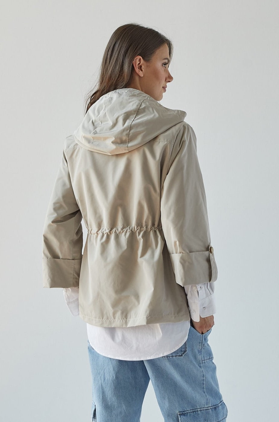 Roseline Hooded Anorak w/ Rolled-Up Sleeves & Waist Toggle