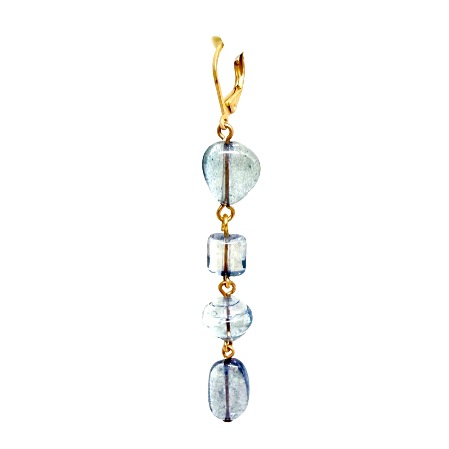 Blue Pressed Glass Multi Shape Linear Earrings on Leverback
