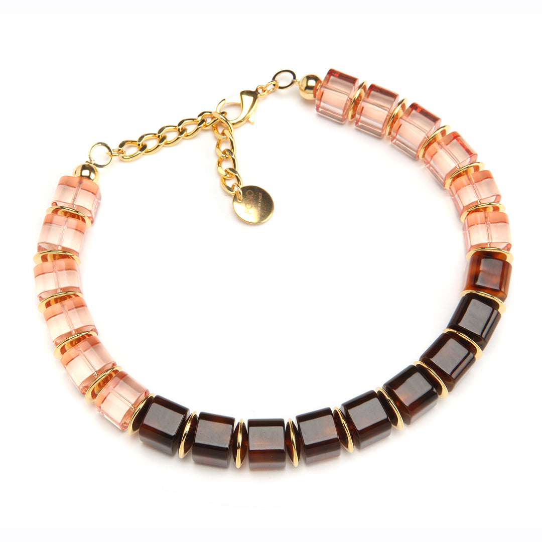 The Helaine Necklace unites patterns of the animal kingdom with cylinders of tinted light.