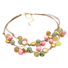 Pink Jade, Prehnite, And Citrine Quartz Two Strand Woven Necklace