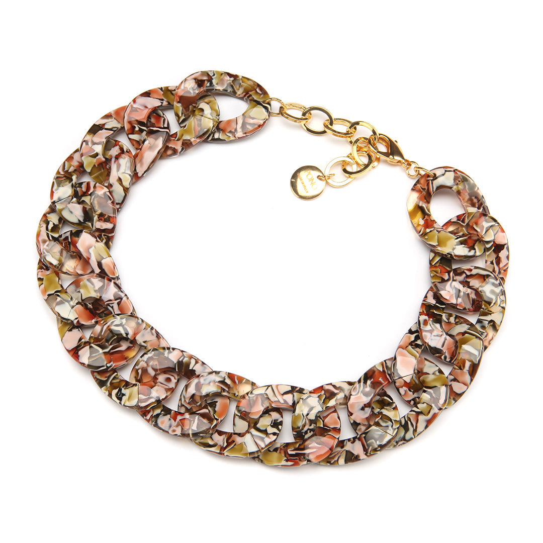 Bold & beautiful! Our Rochelle Necklace is created with multi layers of magnificent materials that are hand sculpted by Italian artisans.