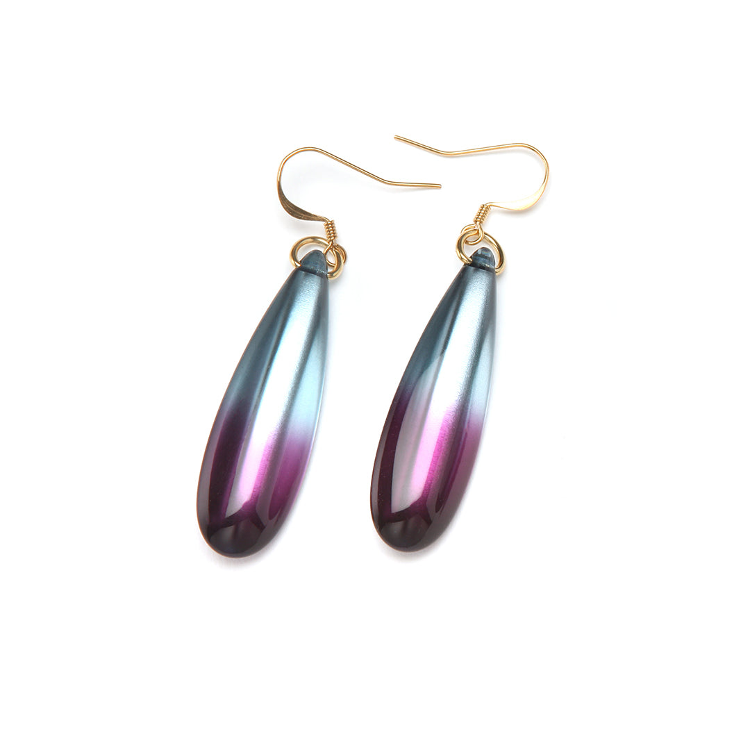Our Silvia H20 Earring is like a watery drop of glowing light. Each piece is hand dyed and shaded. All hand dyed pieces may have a slight variation in color.