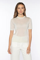 This exquisite crewneck sweater combines luxurious viscose with subtle metallised fiber accents, creating an understated shimmer that catches light beautifully. The short sleeves offer versatile layering options for transitional seasons, while the premium fabric blend ensures a soft, breathable feel against the skin. Perfect for elevating everyday essentials with refined sophistication and contemporary elegance.