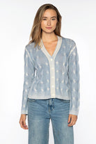 Woven from 100% cashmere, this vee cardigan features a distinctive spray print pattern layered over classic cable knitting. The luxurious fiber delivers unparalleled softness and thermal regulation, creating a versatile piece worthy of investment.
