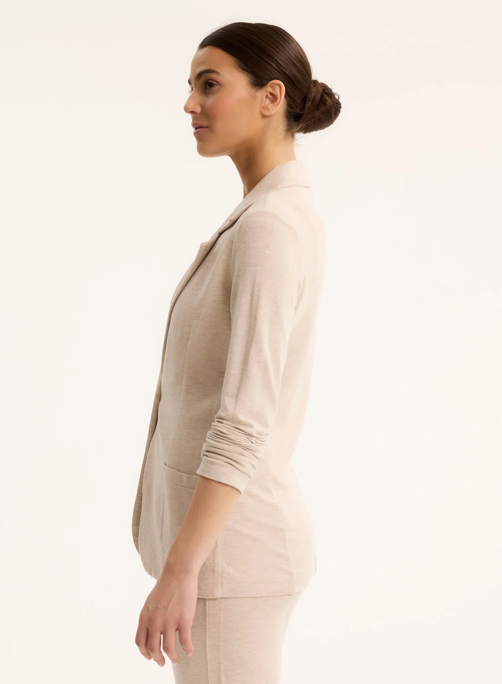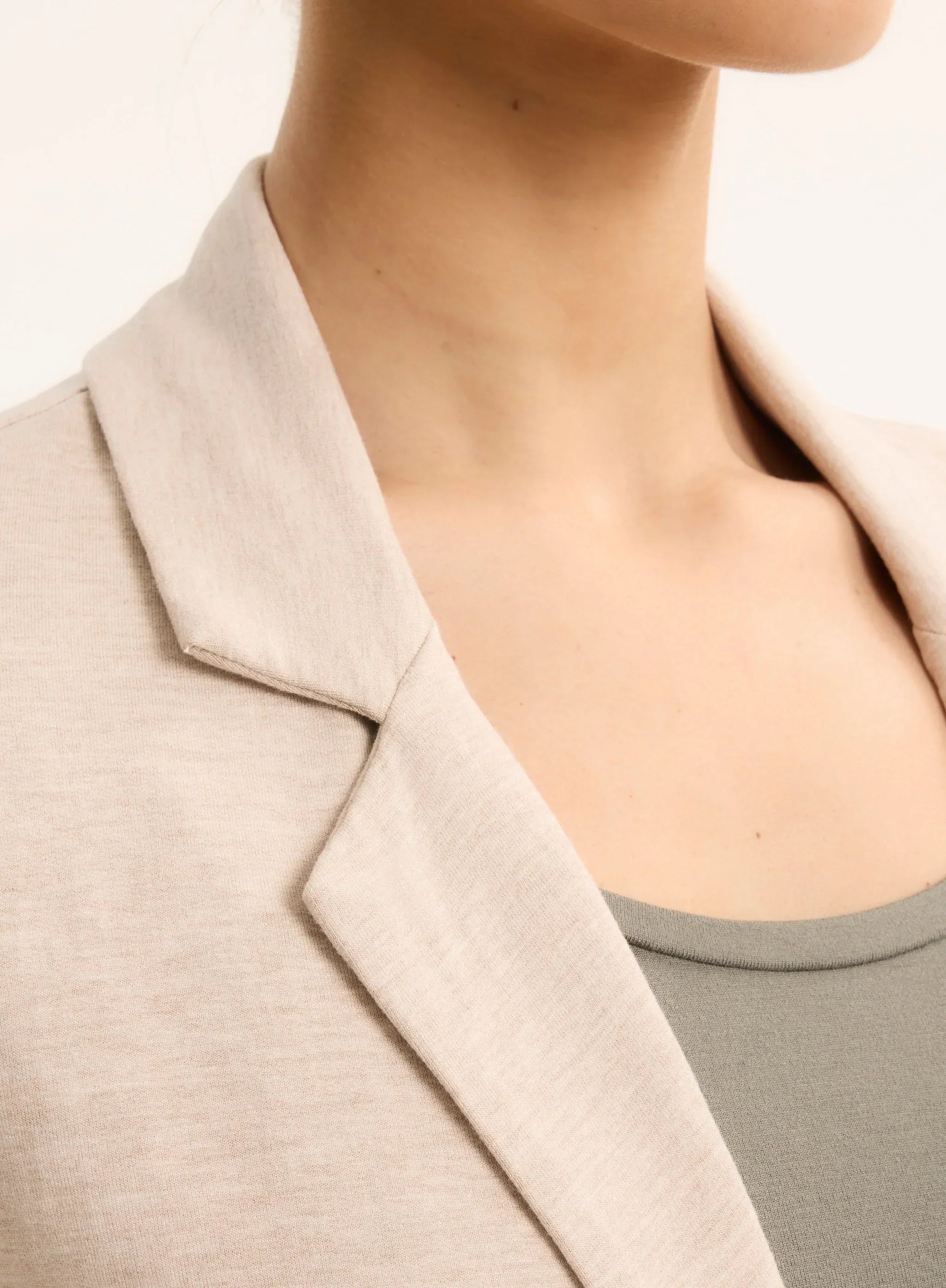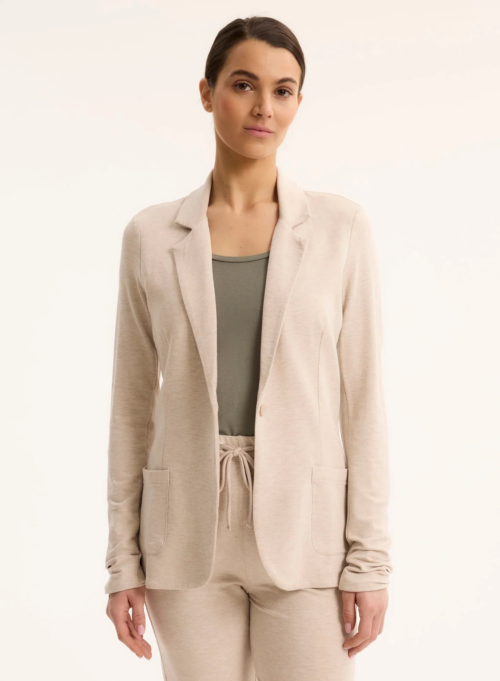 This one button blazer features a fitted silhouette. Our luxurious french terry boasts an ultra-soft looped interior with unique anti-microbial finish that wicks sweat away from body and will never pill, stretch, fade or wrinkle.