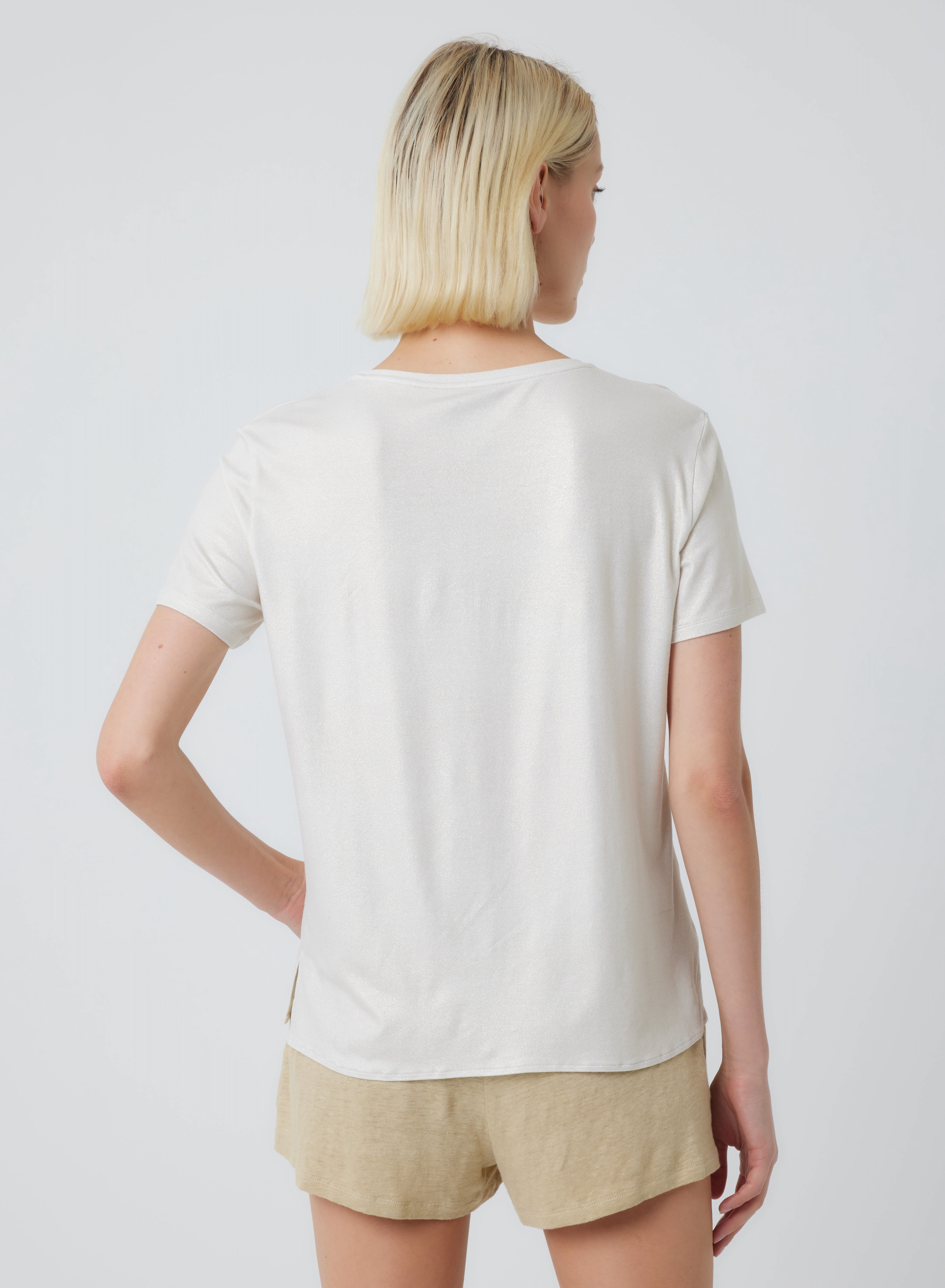Soft Touch Metallic Short Sleeve Relaxed V-Neck T-Shirt