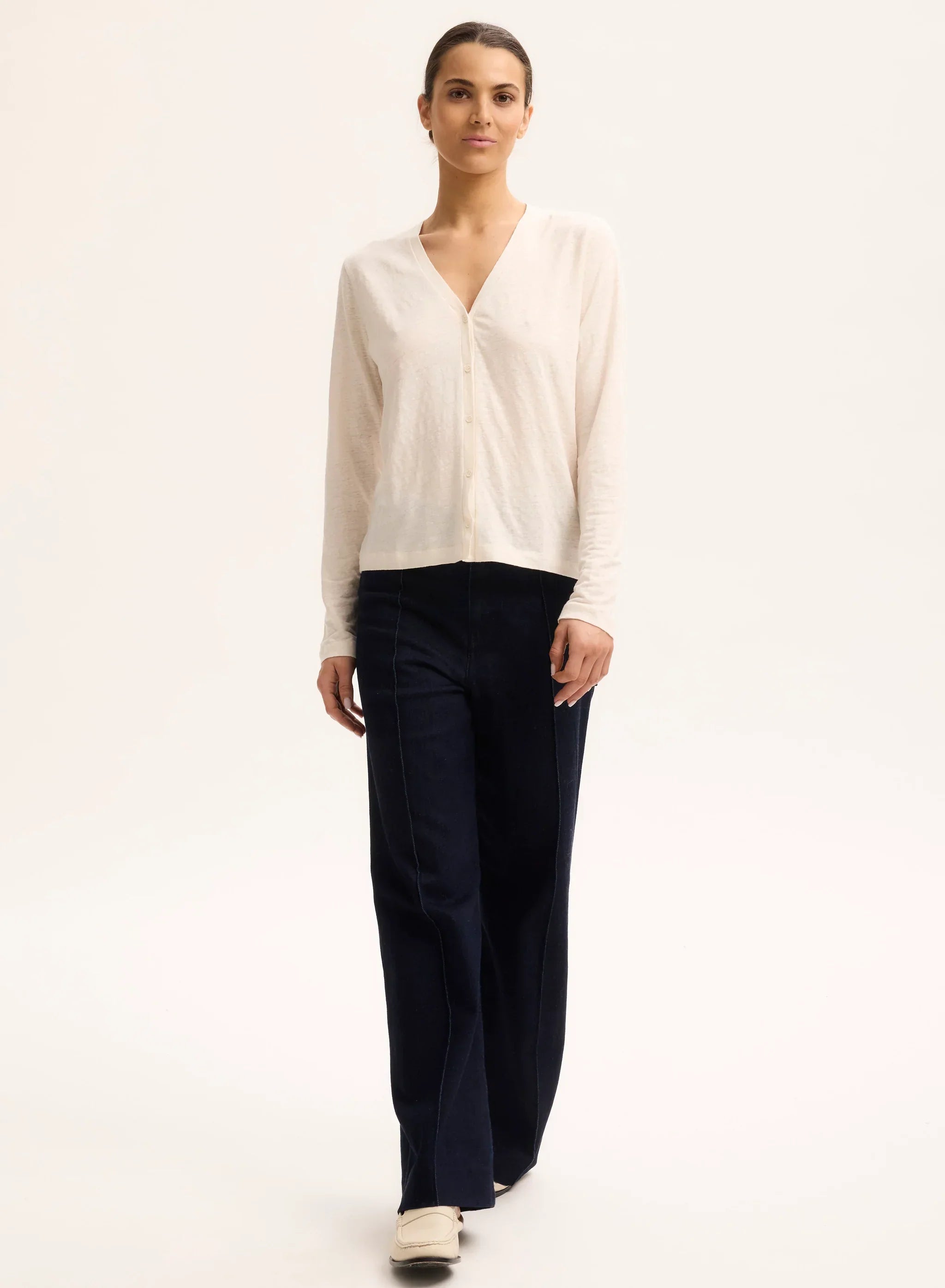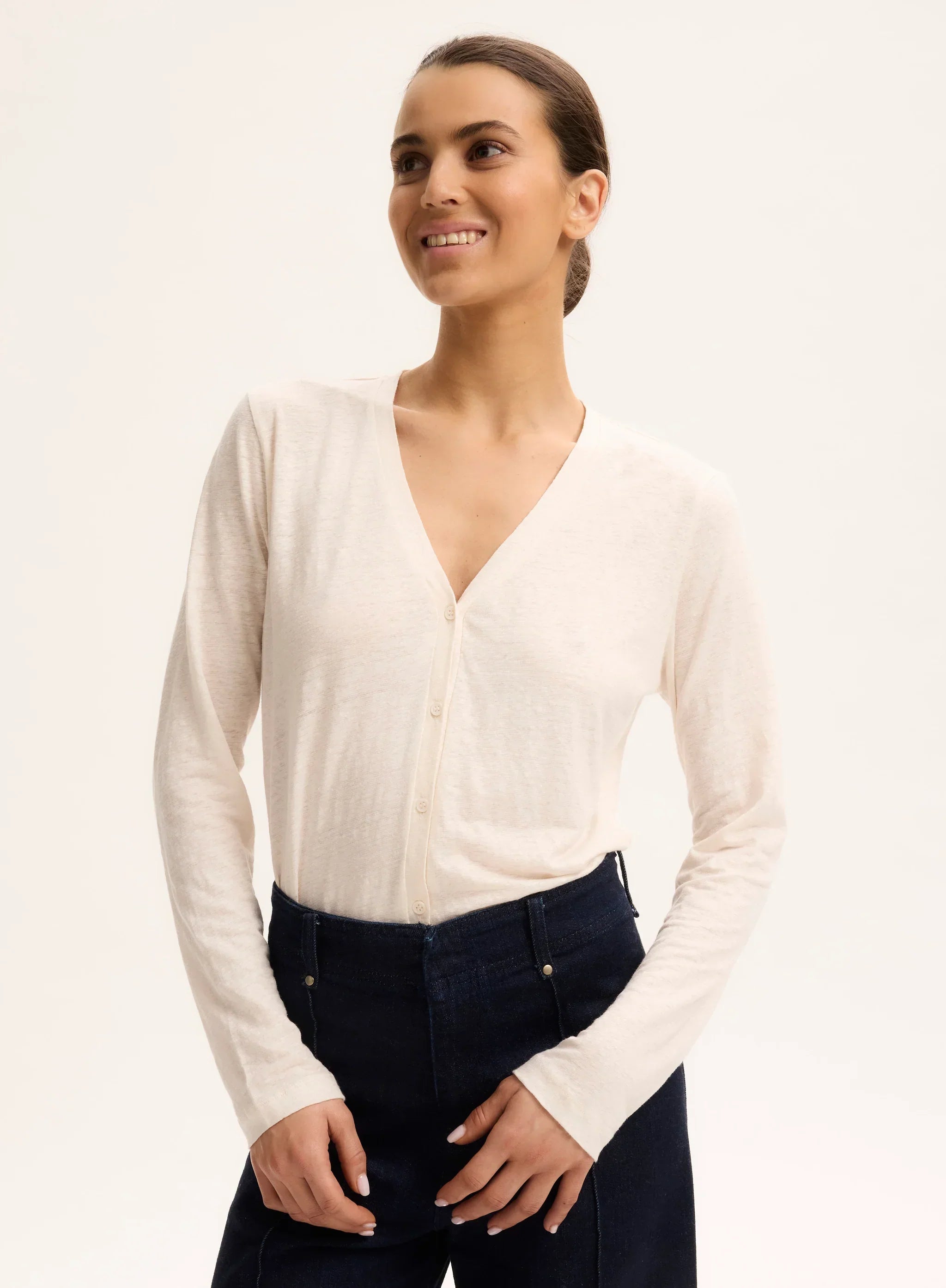 Stretch Linen V-Neck Cardigan