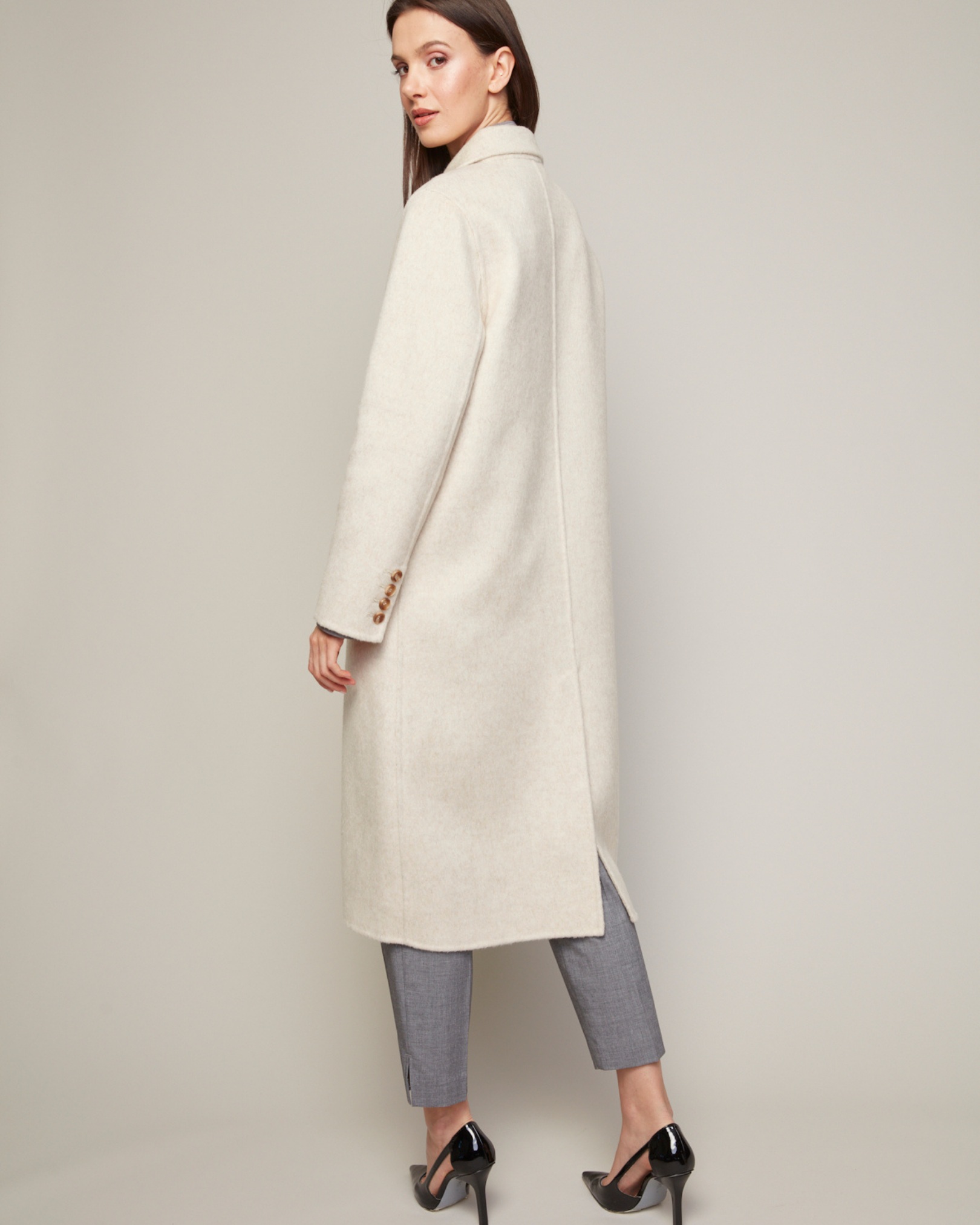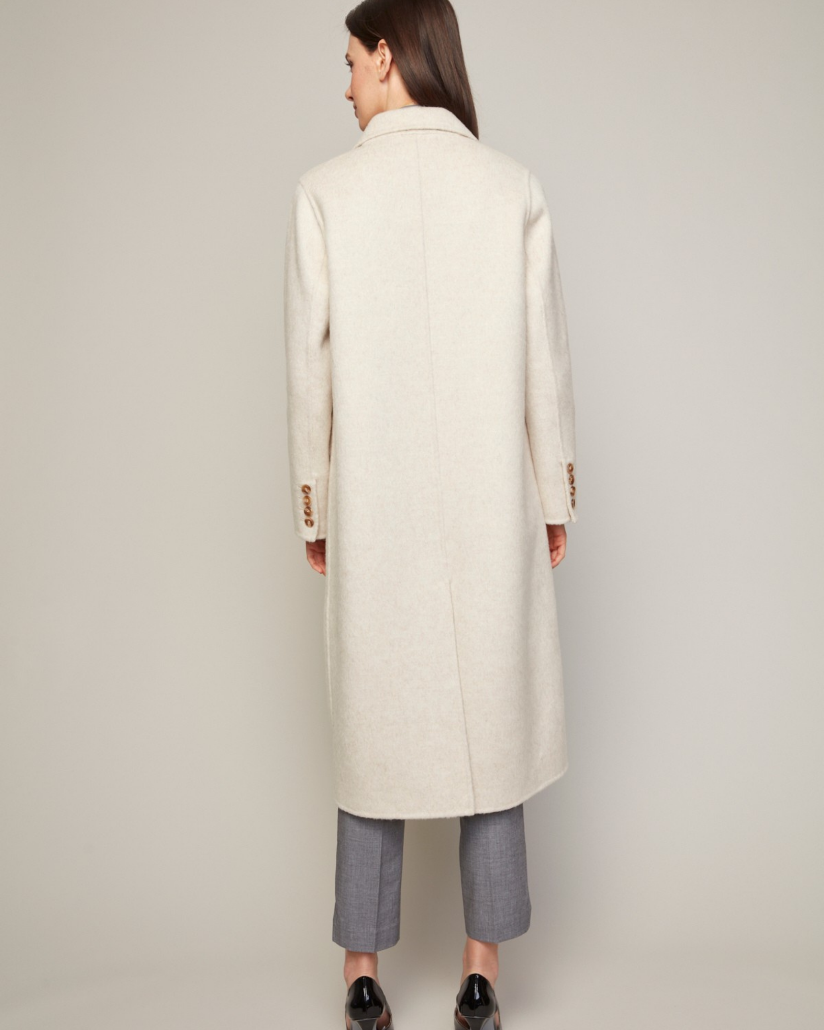 Bennett Double Breasted Double Face Long Wool Blend Coat (Birch)