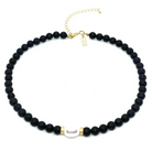 Black Onyx With MOP Pearl Center and Matte Gold Accents Necklace