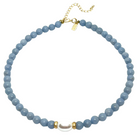 Blue Angelite With MOP Pearl and Matte Gold Accents Necklace