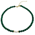 Green Jade With MOP Pearl Center and Matte Gold Accents Necklace