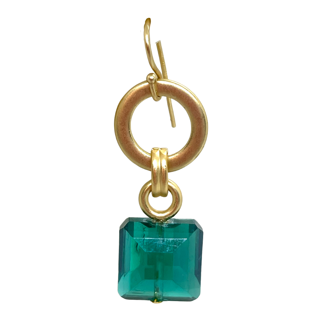 Matte Gold Circle Hoop With Emerald Green Square Crystal Drop Earrings
