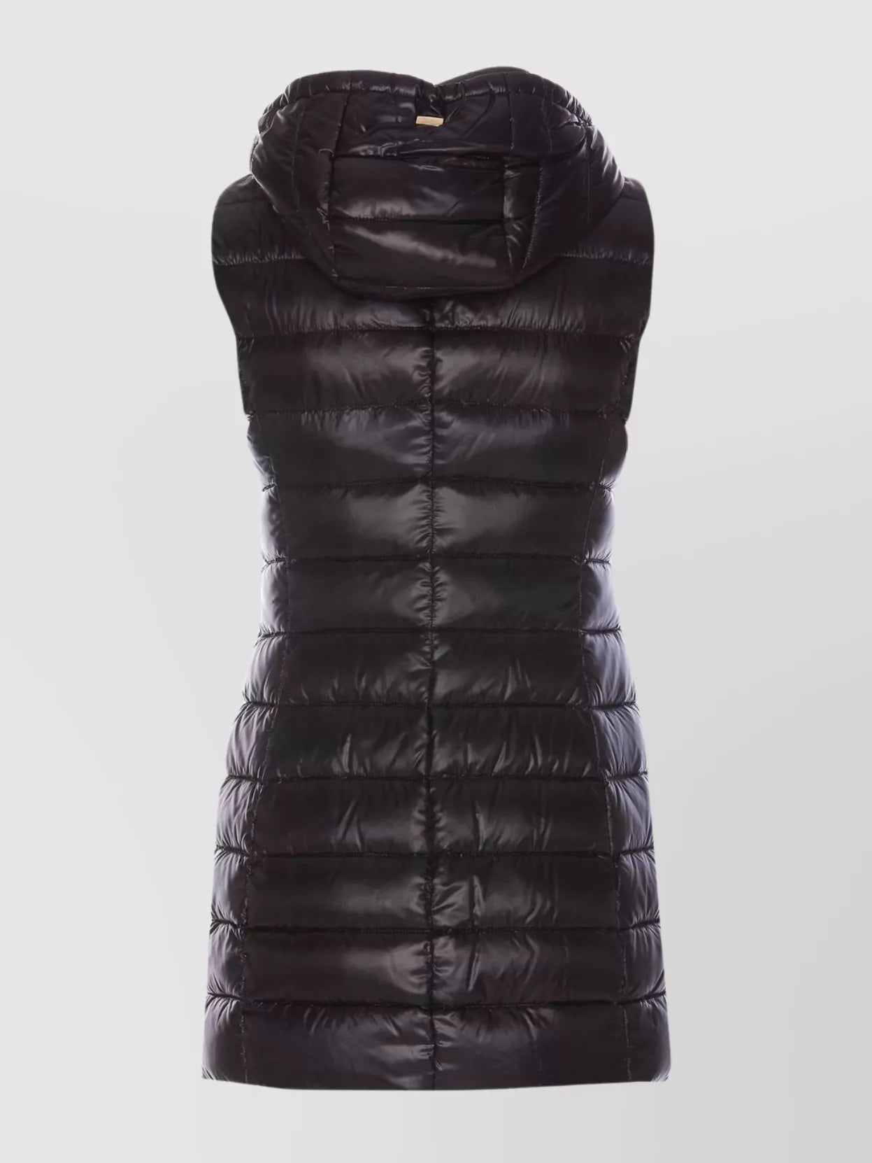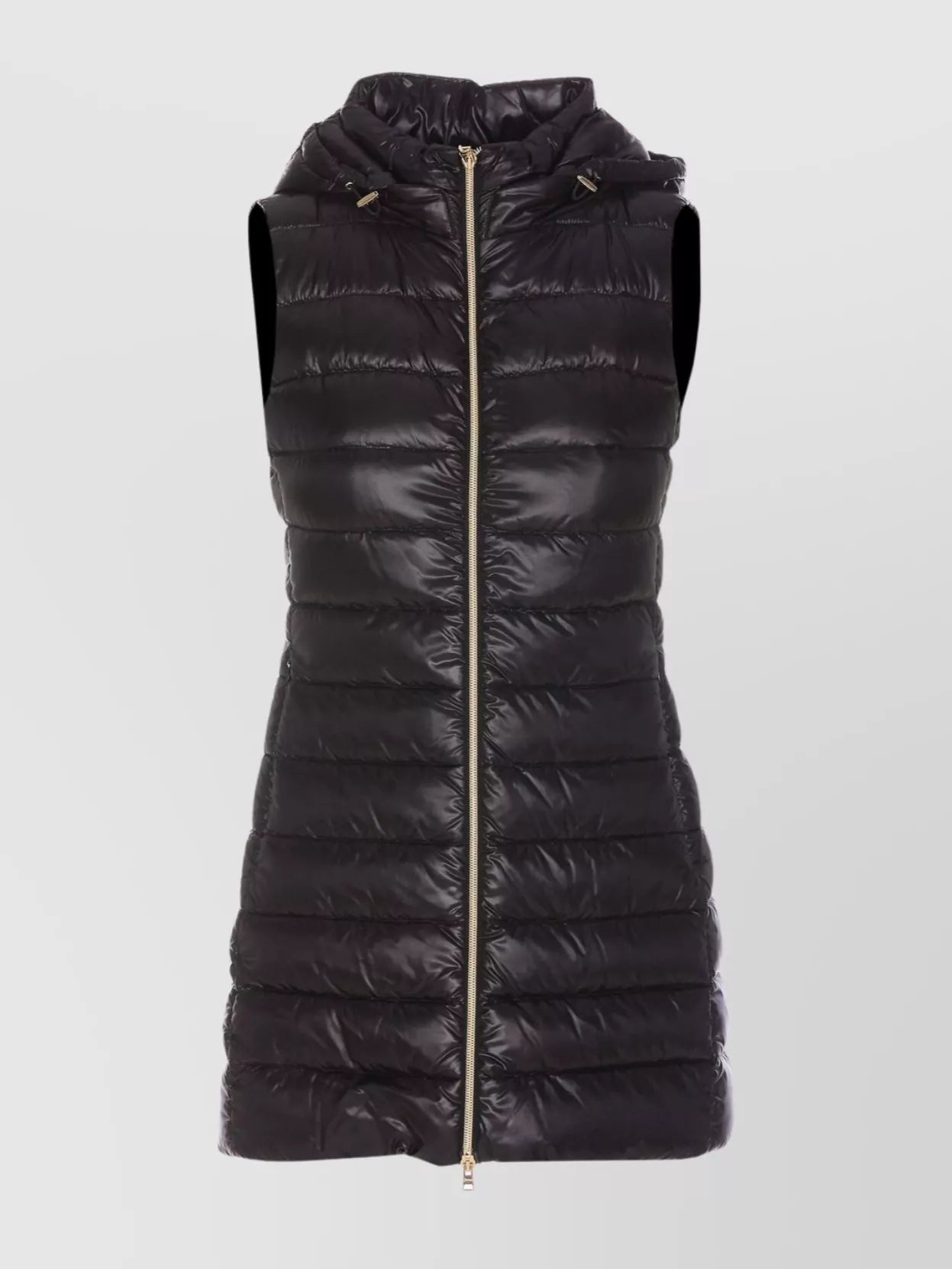 The Serena Vest with Removable Hood in Black combines advanced insulation technology with refined design. Featuring 200 grams of Ultralight nylon padding enhanced by injected fine goose down, this quilted vest delivers exceptional warmth without bulk. Its detachable hood adds adaptable protection, making it a sophisticated and practical choice for variable weather conditions and layering needs.