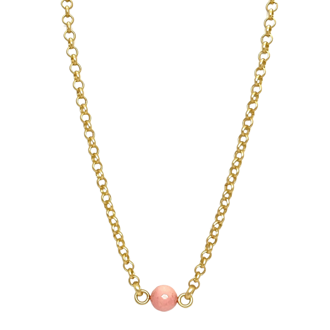 Pink Coral Jade on Matte Gold Rolo Chain Necklace