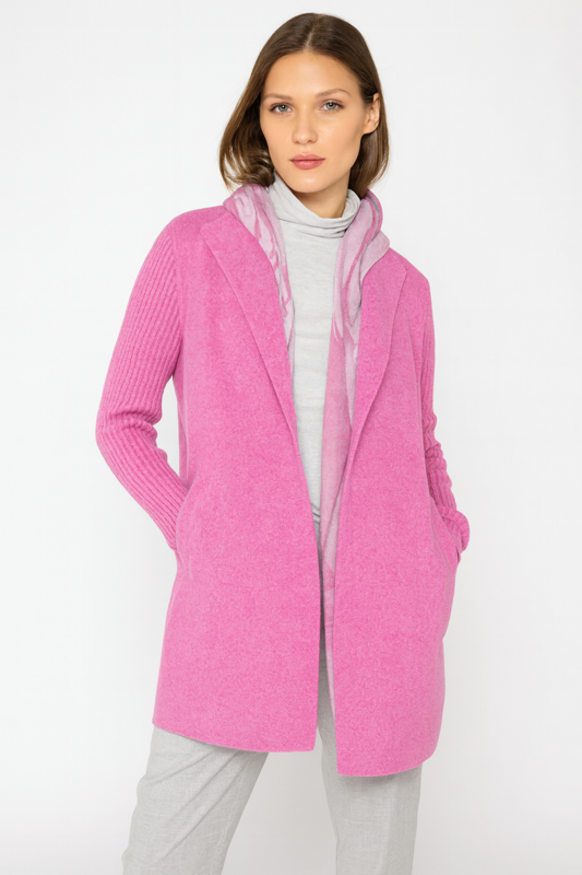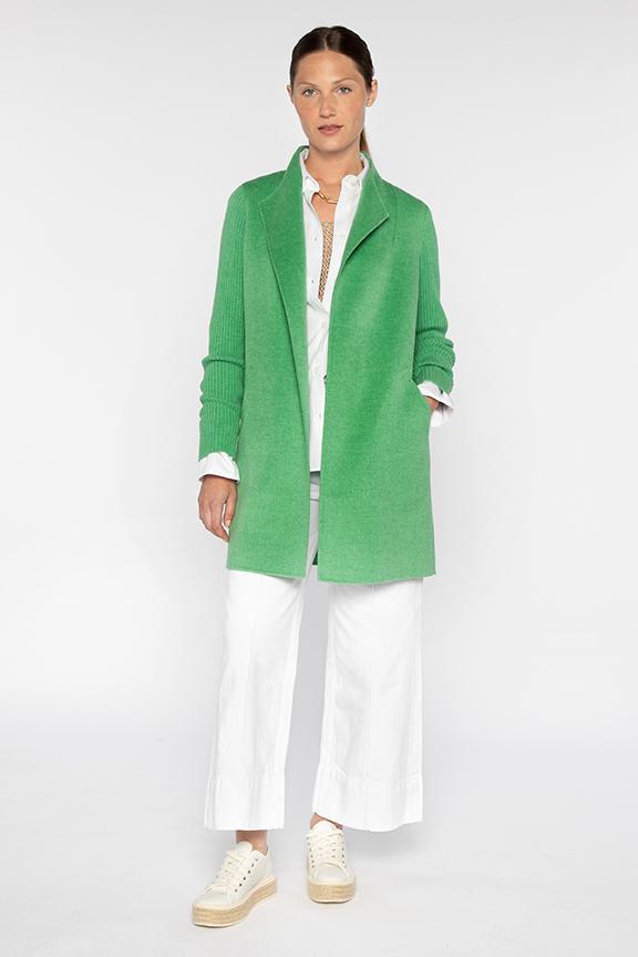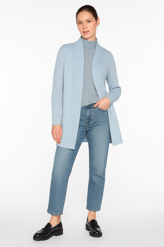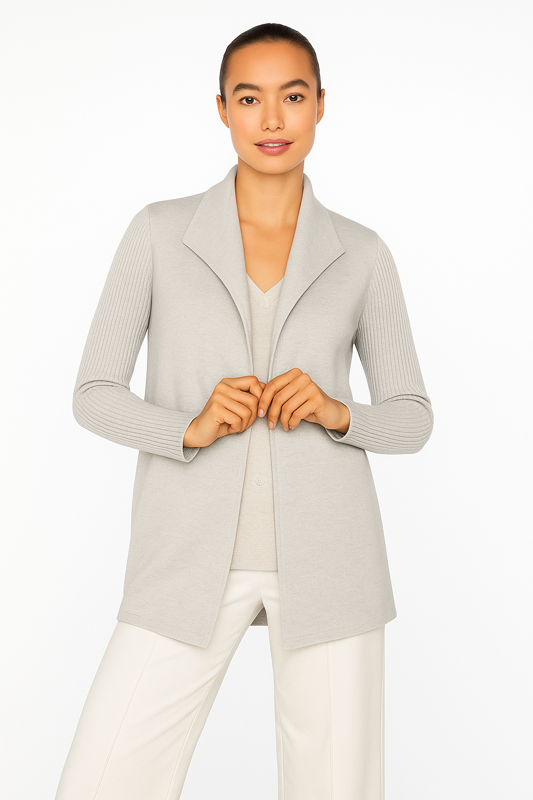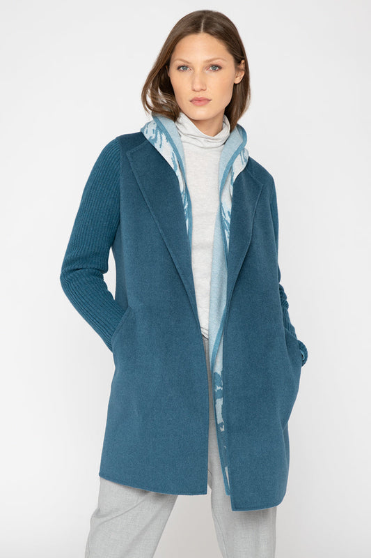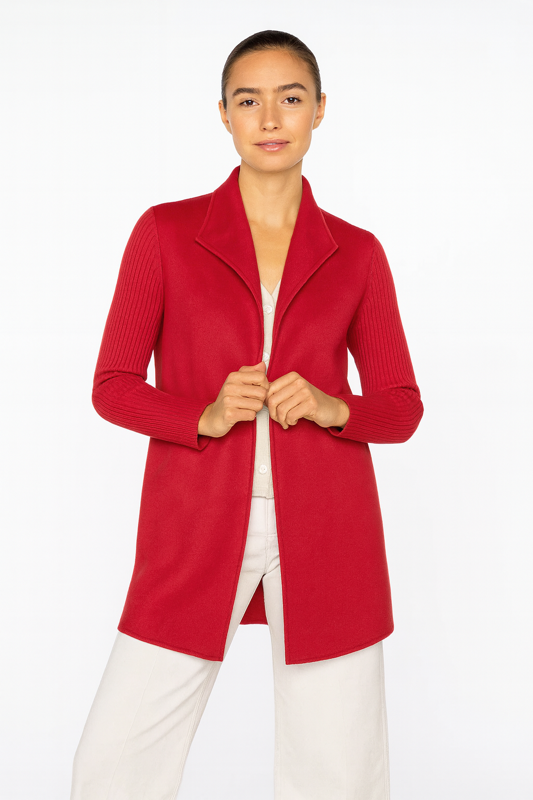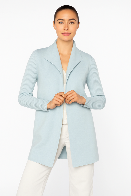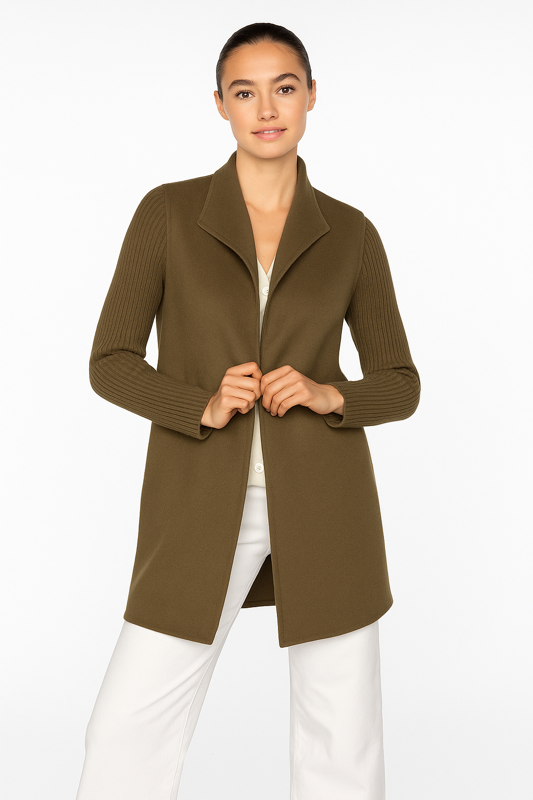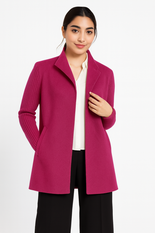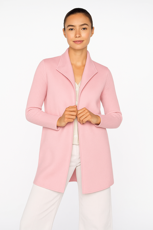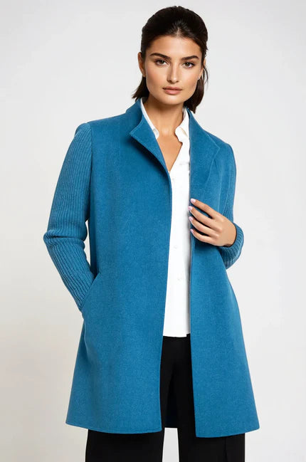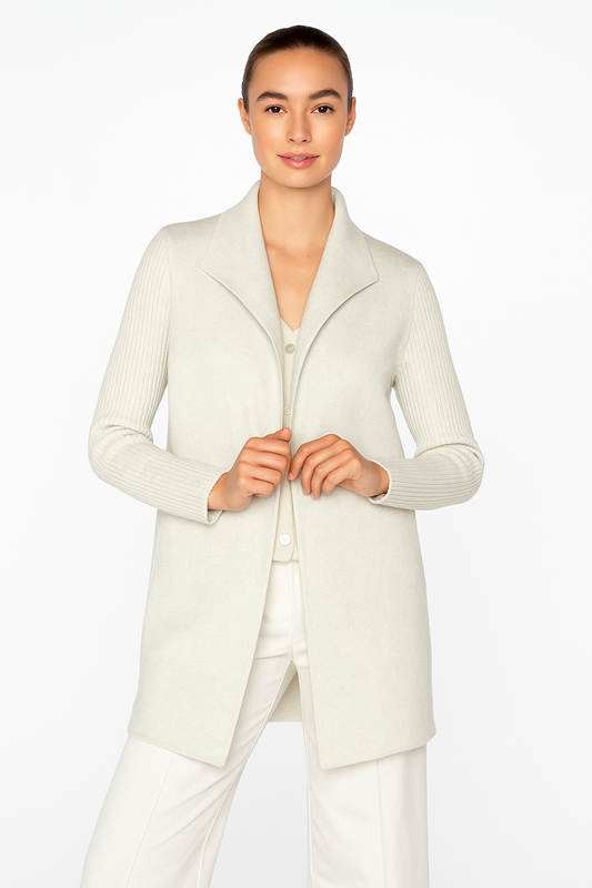Ribbed sleeve detailing adds subtle texture and a contemporary edge to a refined outerwear silhouette. The rich wool-cashmere blend delivers the warmth and structure of wool with the exceptional softness and drape of cashmere, creating a lightweight yet insulating layer that moves with you.