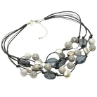 Snowflake Agate Gray Crystal, and Matte Silver Gray Leather And Linen Torsade Necklace