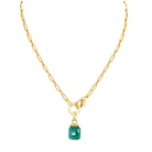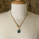 Square Emerald Green Crystal Front Closure Necklace On Matte Gold Chain