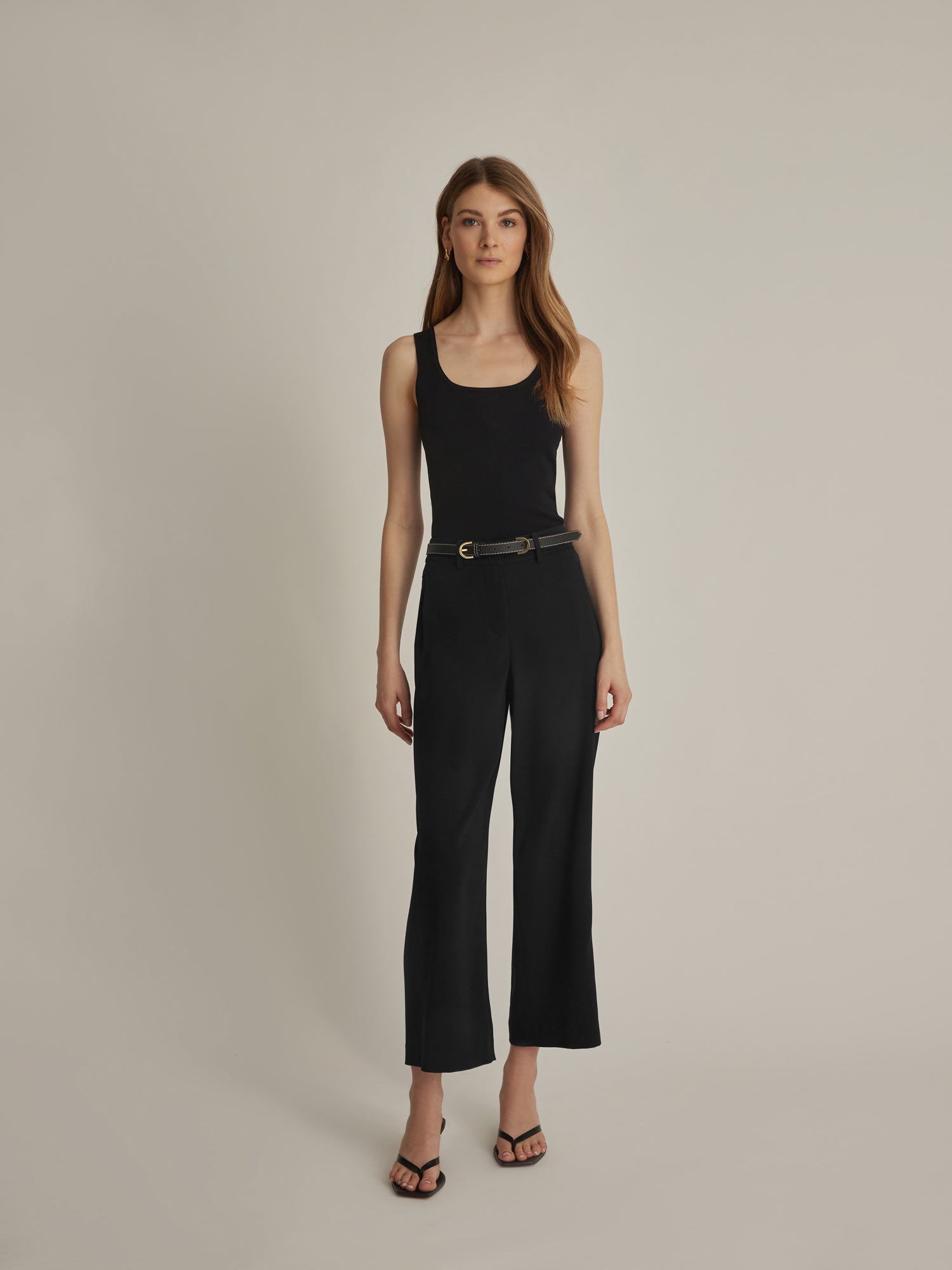 Cropped wide leg pant in Satin Back Crepe, high-waisted