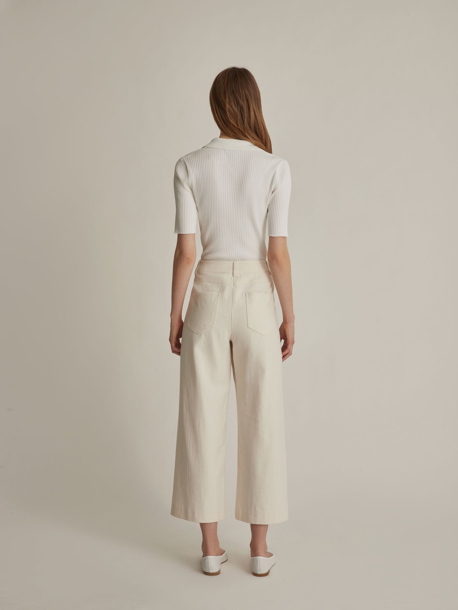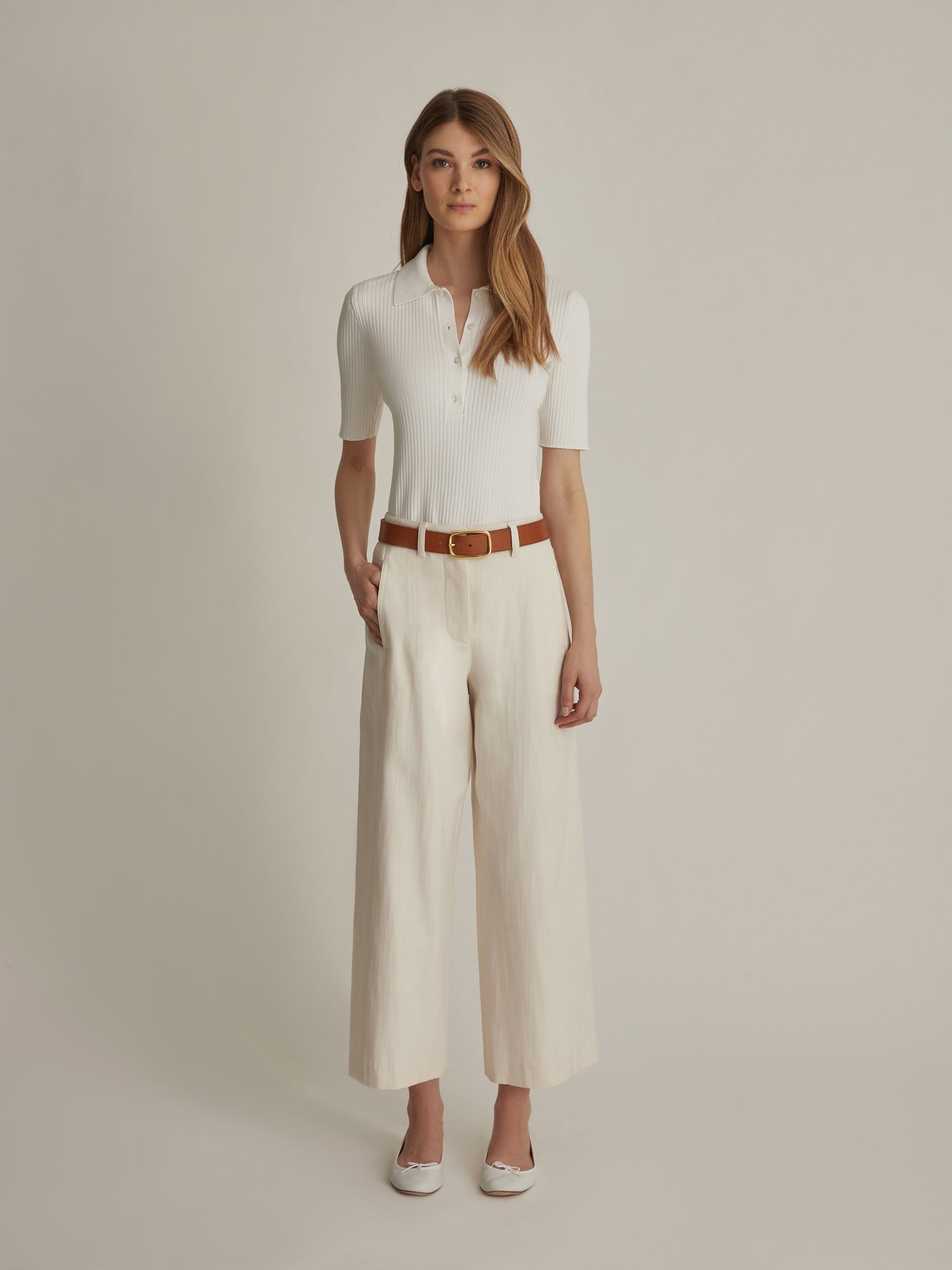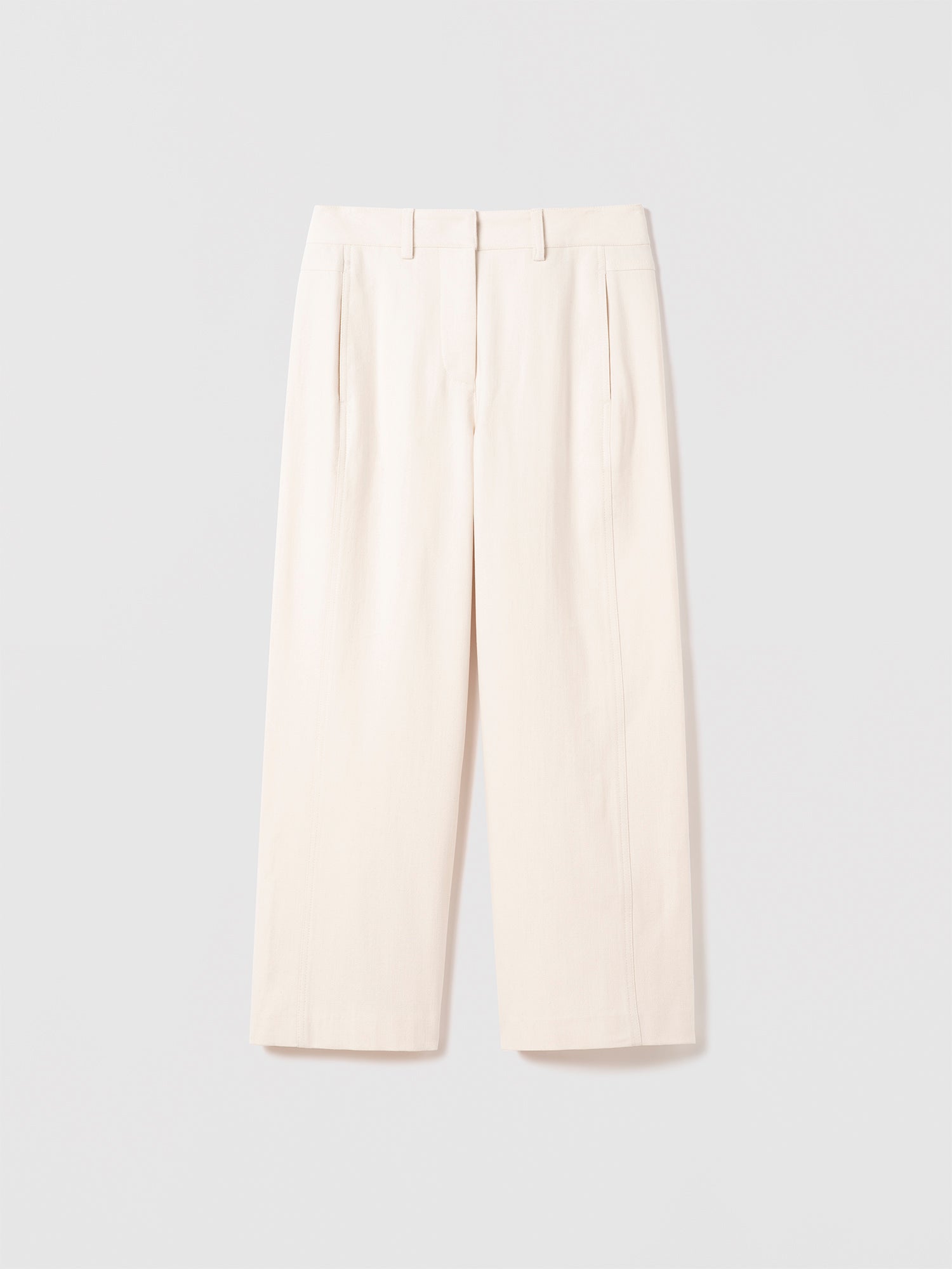 Flat front straight wide leg pant in Cotton Lyocell, mid-rise