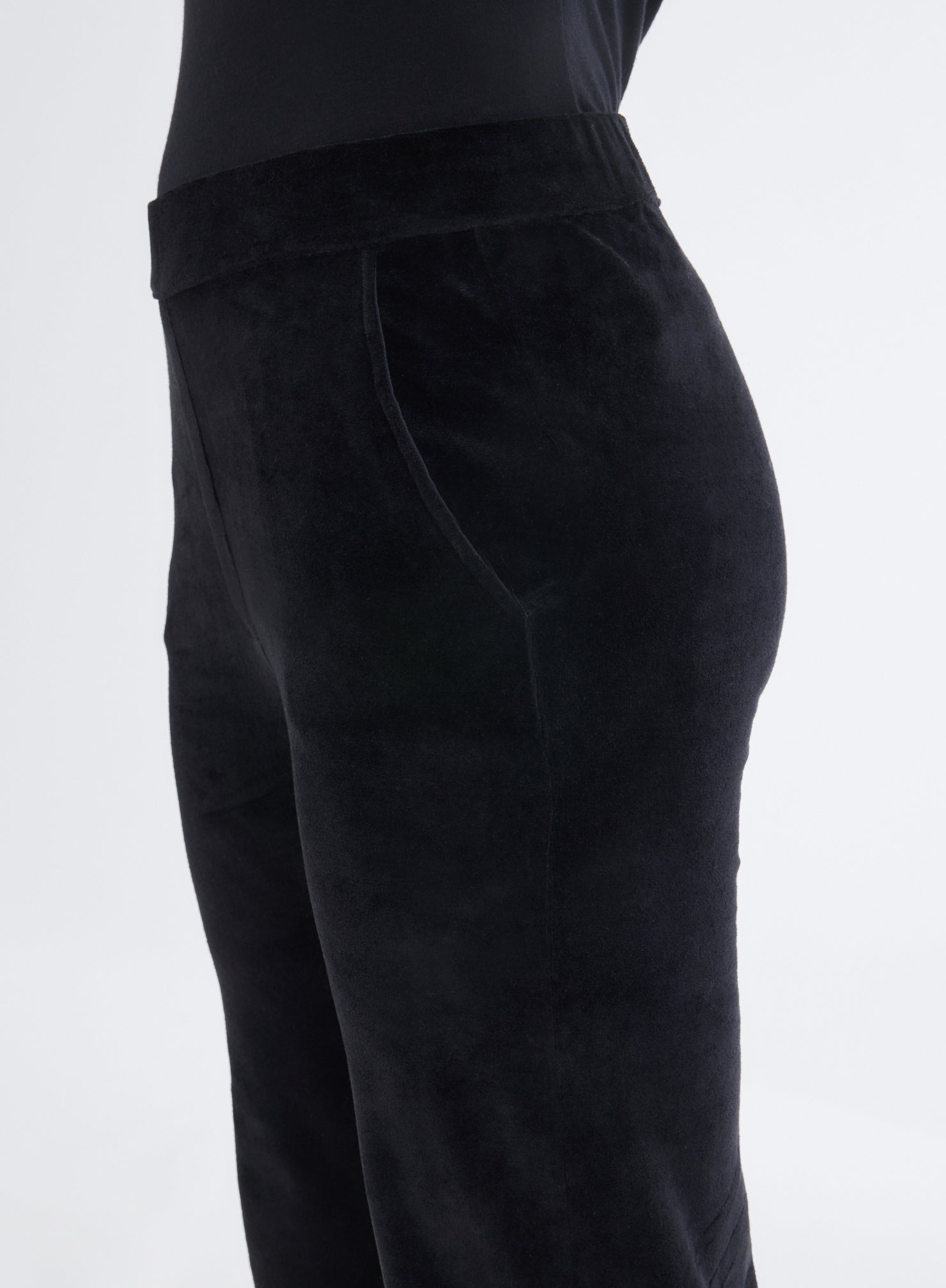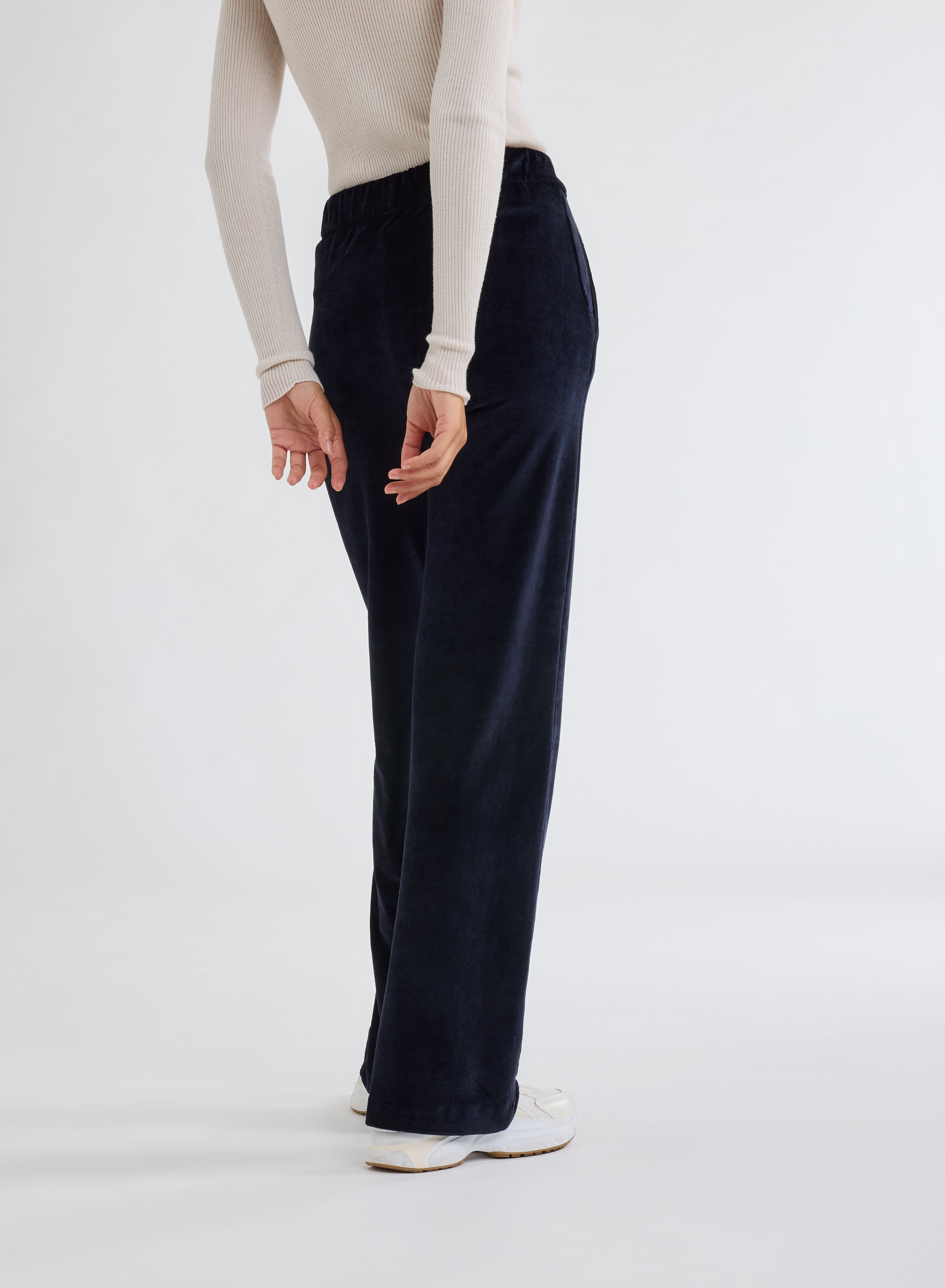 This velour wide leg pant features a semi relaxed silhouette with beautifully crafted detail. Our luxurious velour quality is a unique blend of cotton, modal, and elastane that features an ultra-soft, comfortable, buttery hand feel.