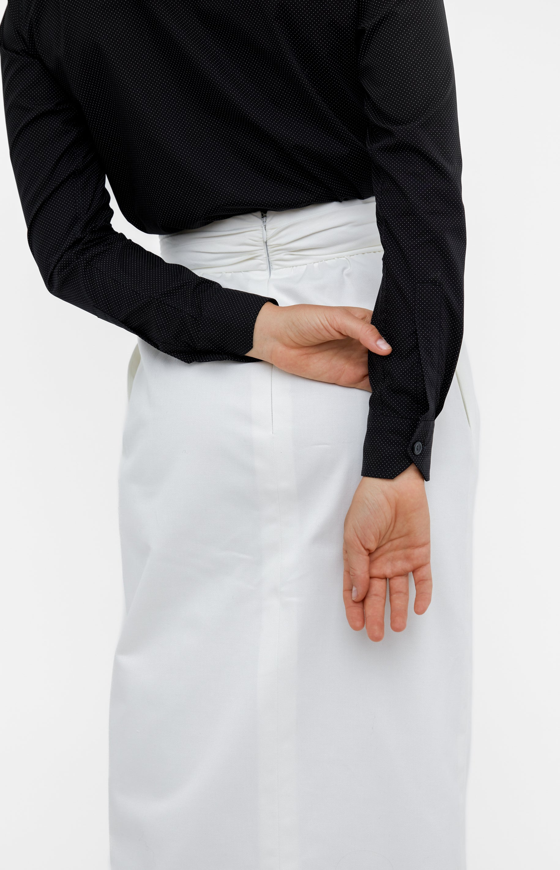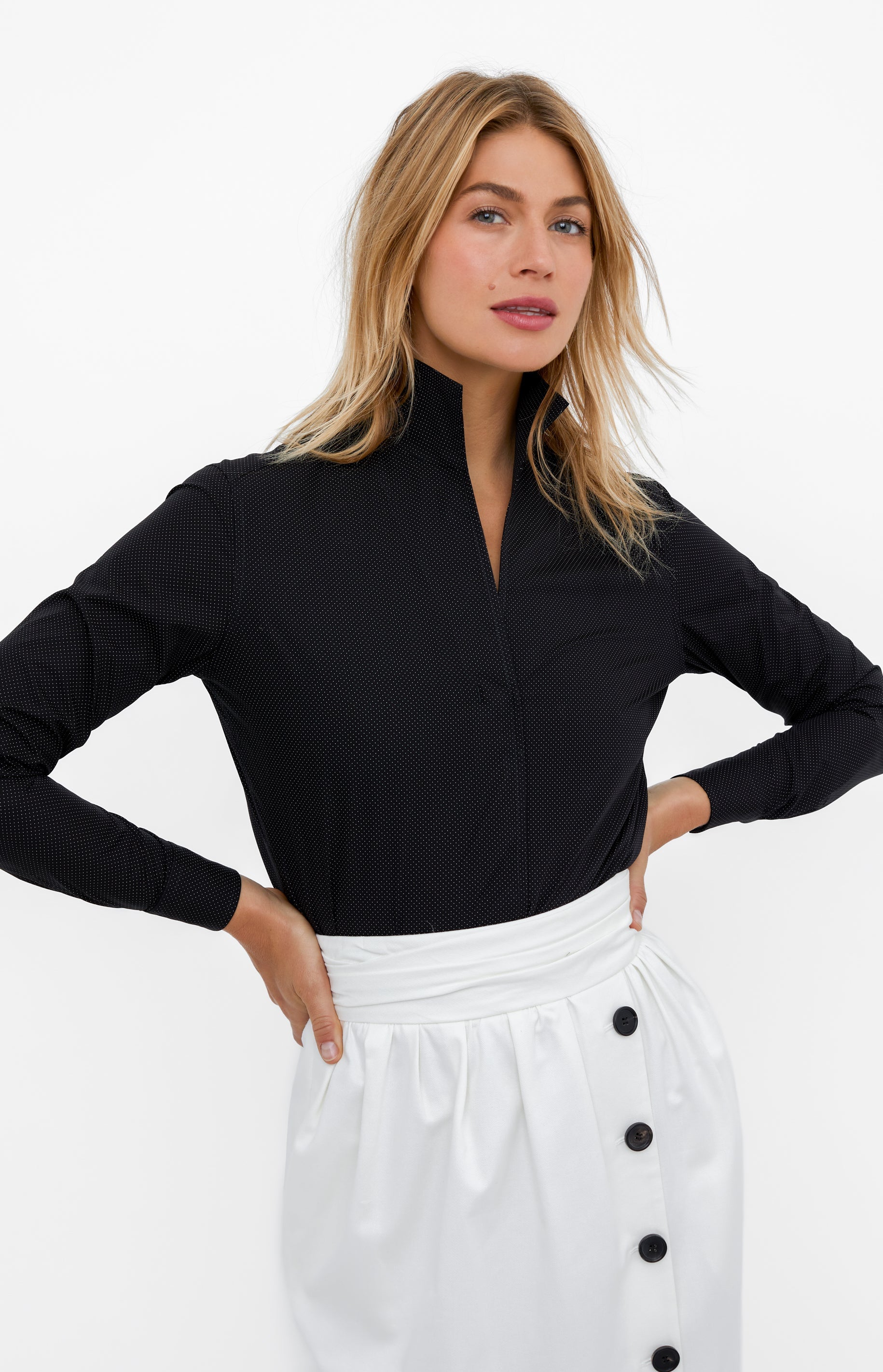 Thrill seekers wanted. Reach the peak of style in Sarah’s fearless pin-dot. Her black and white number is anything but basic, and expertly coordinates with all your favorite pieces. Fiercely sexy yet quietly powerful, her refined Italian broadcloth slays—whether you blaze trails for business, pleasure or both. Button up and enjoy the ride.