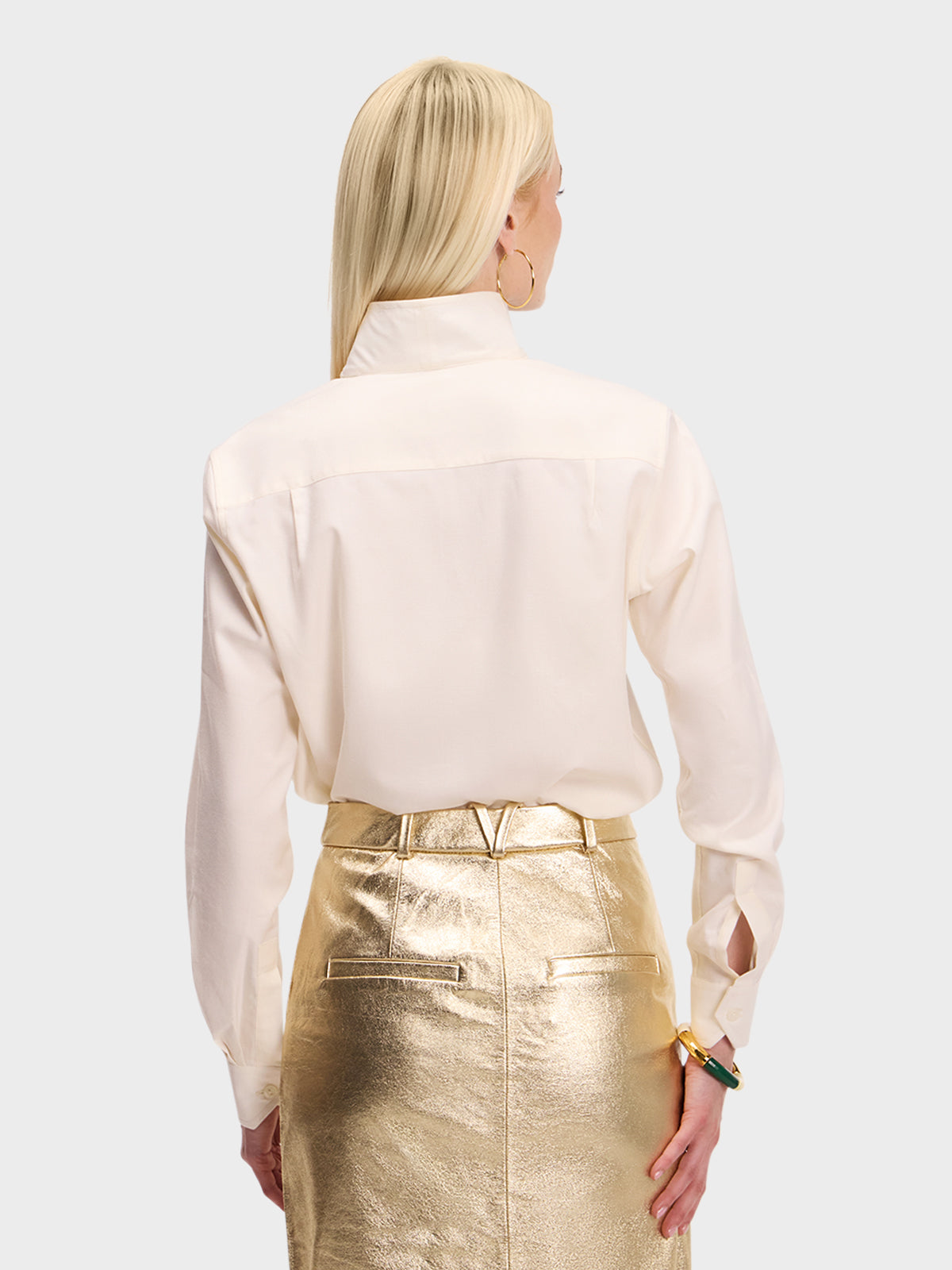 Our best-selling Signature Shirt in a créme cotton, silk and wool blend.