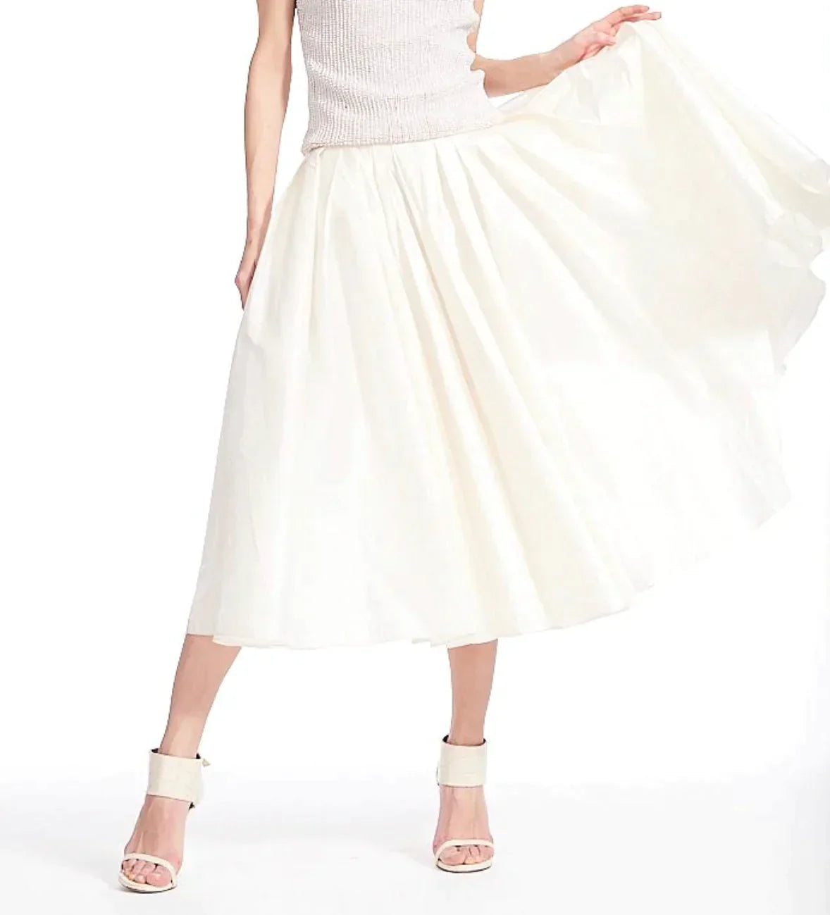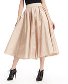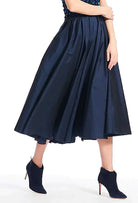 Dramatic Midi Tea length skirt in gorgeous taffeta take our tops to the next level of glam! Perfect color match for the monochromatic look or mix and match. Side seam pockets. Size 0 - 18. Made in India.