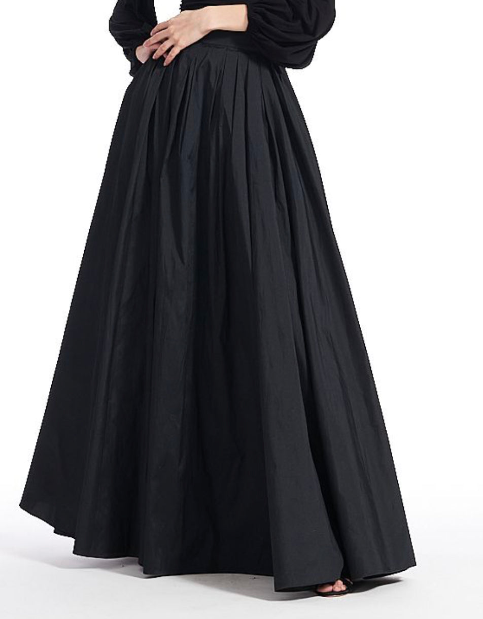 Dramatic ball skirt in gorgeous taffeta take our tops to the next level of glam! Perfect color match for the monochromatic look or mix and match. Side seam pockets.