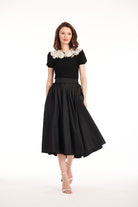 TEA LENGTH PLEATED SOFT TAFFETA MIDI SKIRT BLACK