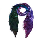 This scarf is a love letter disguised as a canvas. Radiating outward in a circular rhythm, each phrase — I wish for you cozy socks, time travel, cupcakes for breakfast, endless summer days — reads like a personal note from someone who cares. Set against a dreamy blend of violet, teal, and midnight hues, it evokes the wonder of possibility and the quiet power of hope. It’s a reminder that we all deserve beauty, joy, and a life filled with soft moments and bold adventures.