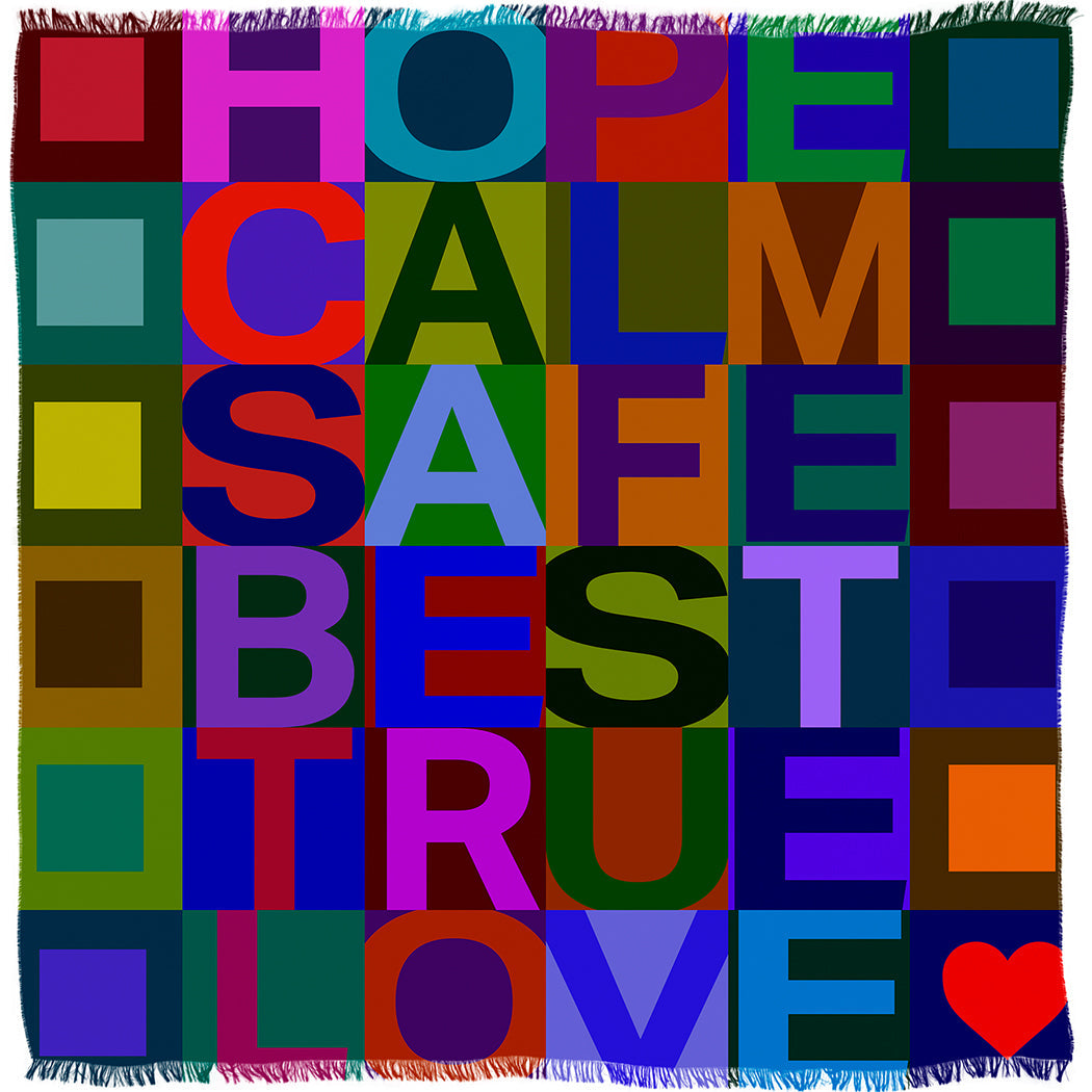 Words like love, safe, and hope flow seamlessly across the scarf, creating a visual mantra of serenity. This scarf is a whisper of encouragement, a silken affirmation that uplifts with every glance.