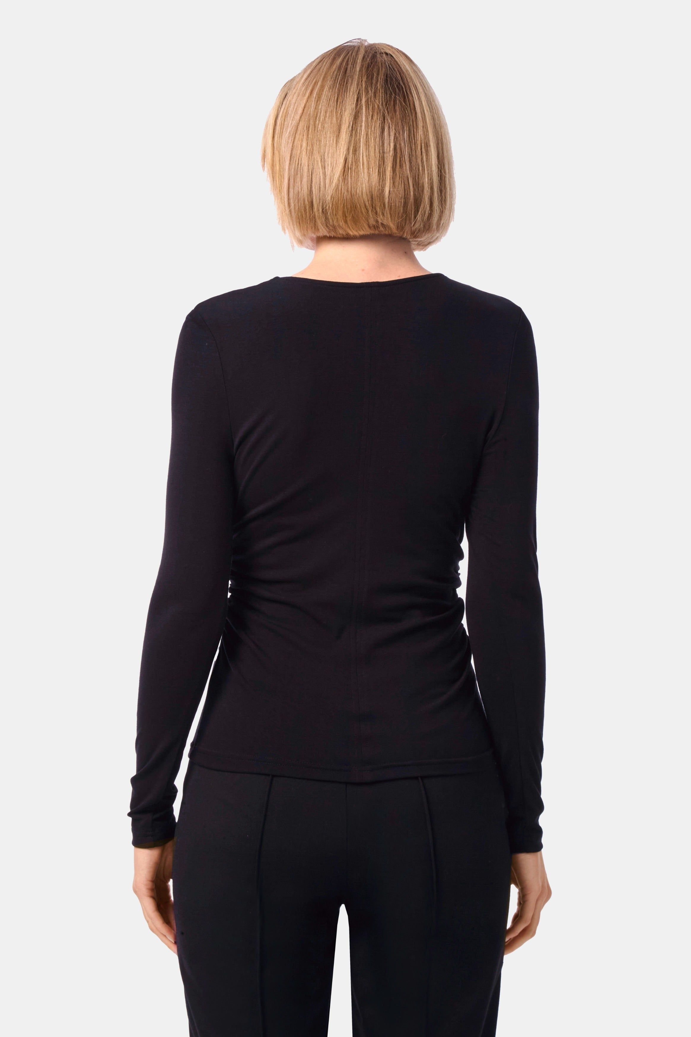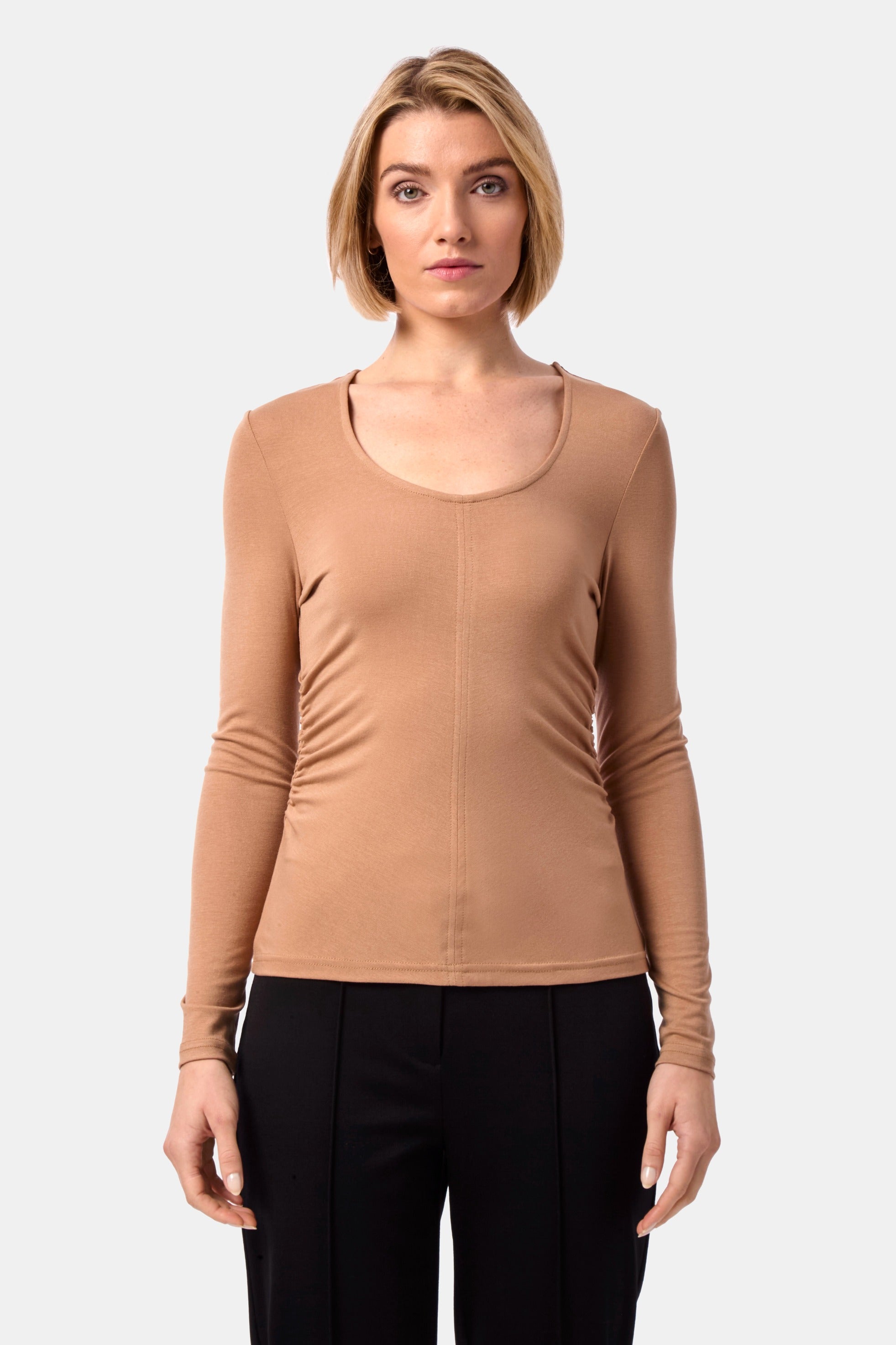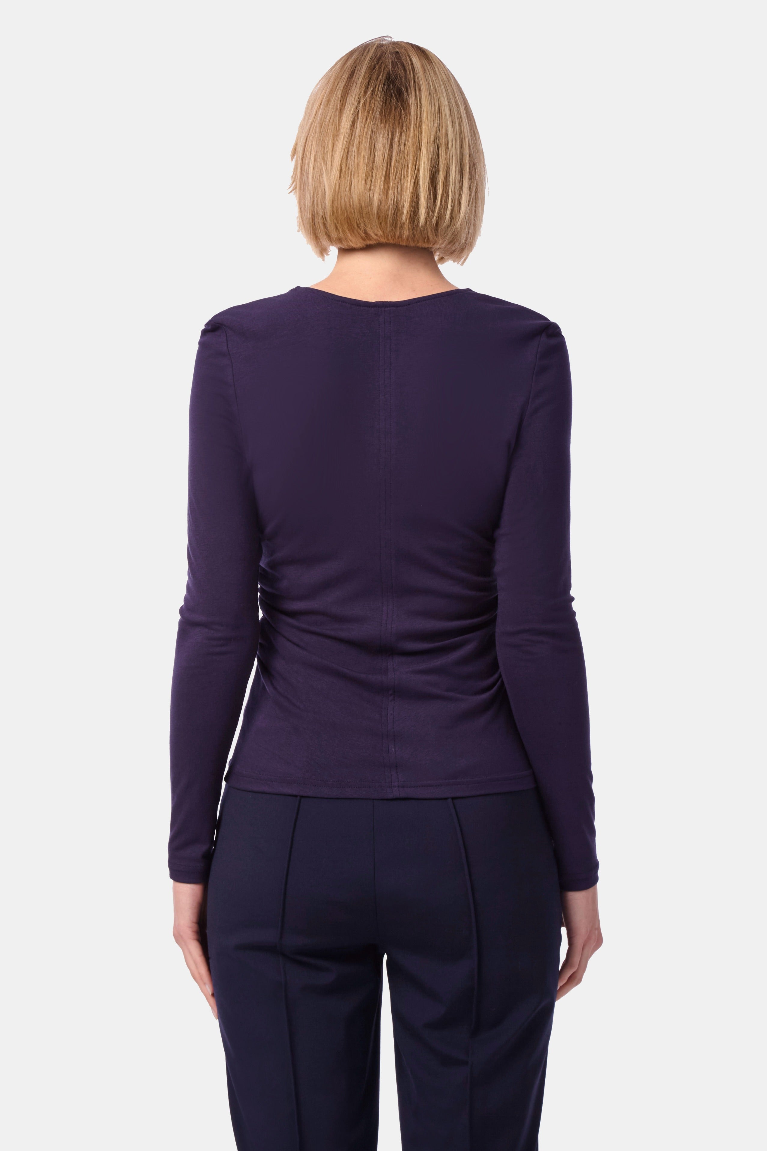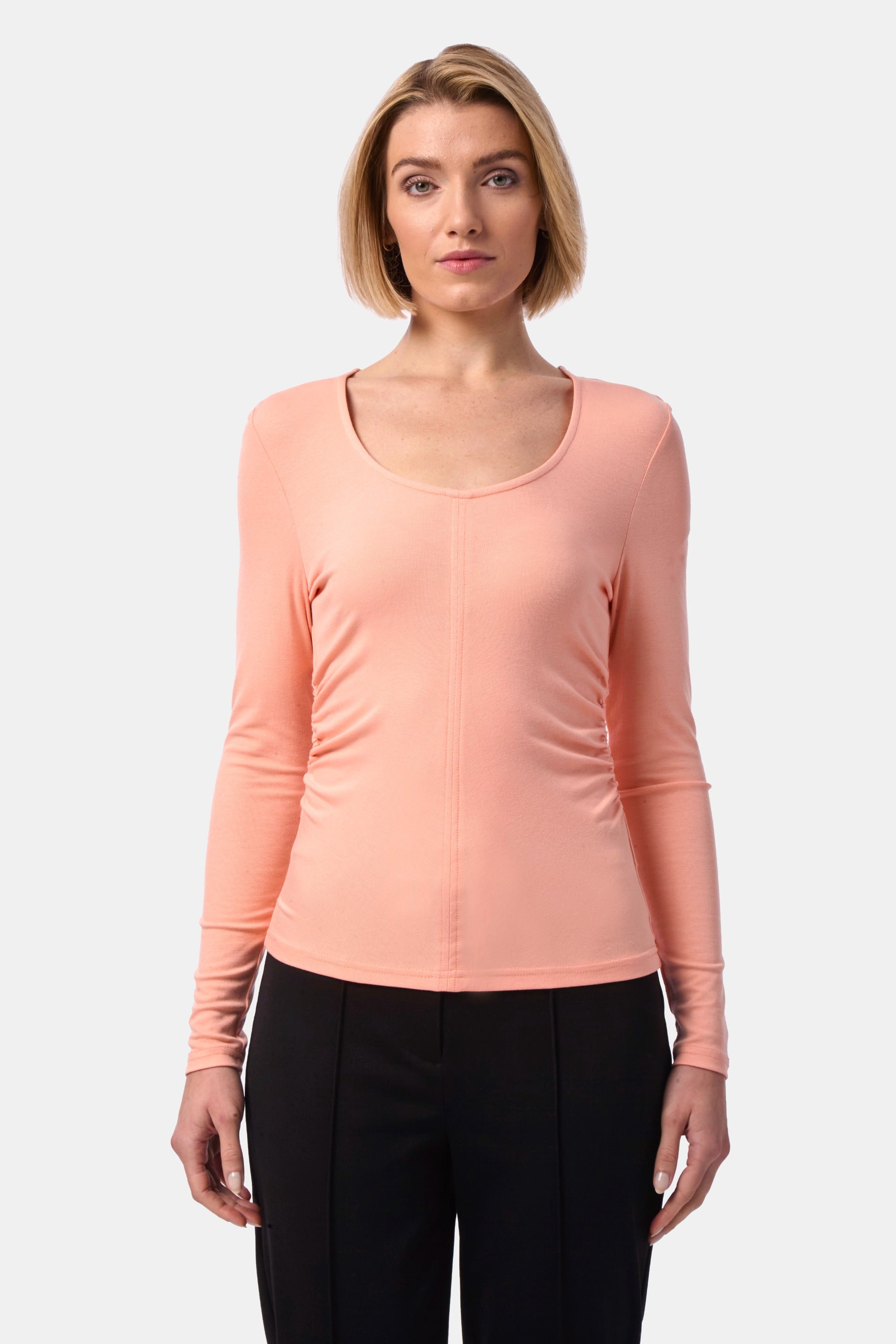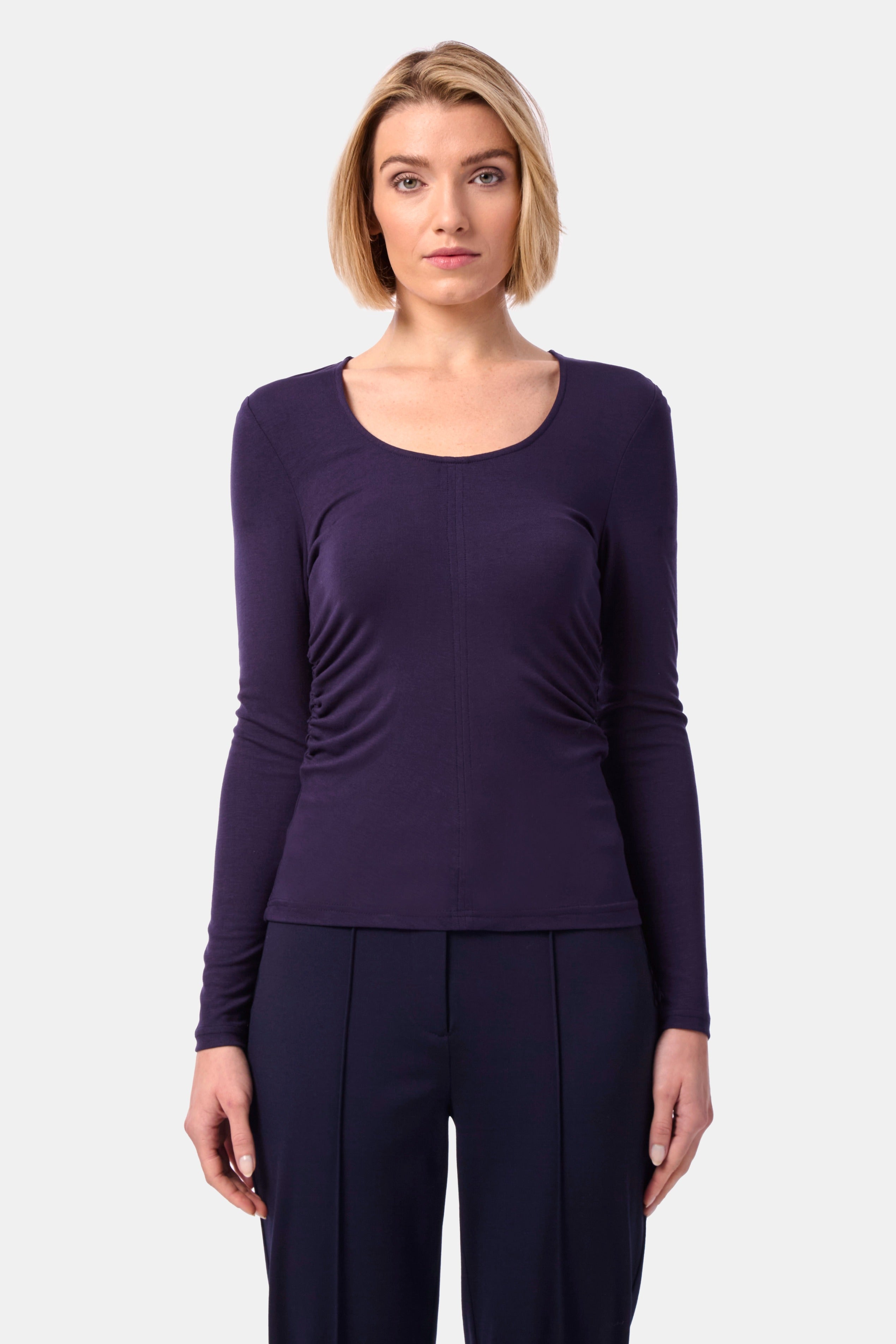 Feminine all the way. This perfectly rounded neck tee has rouching on the side for the most flattering fit.