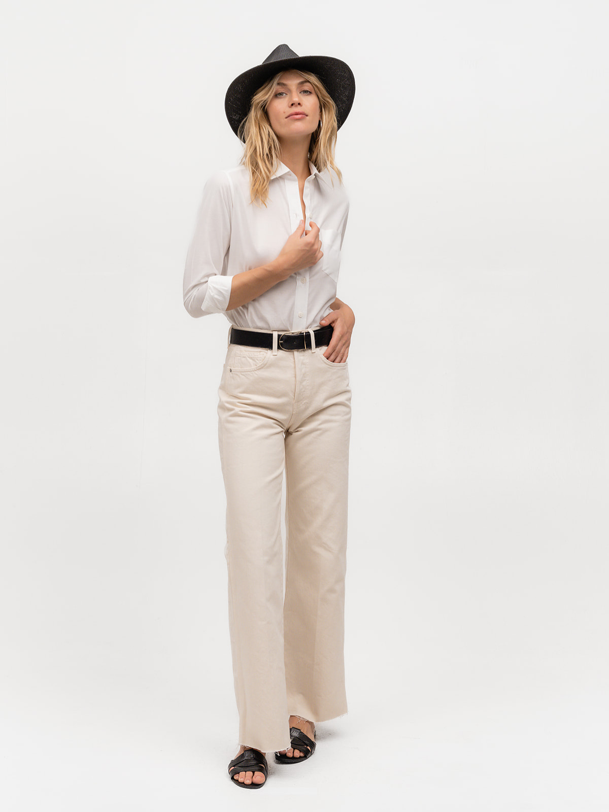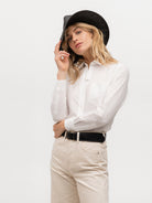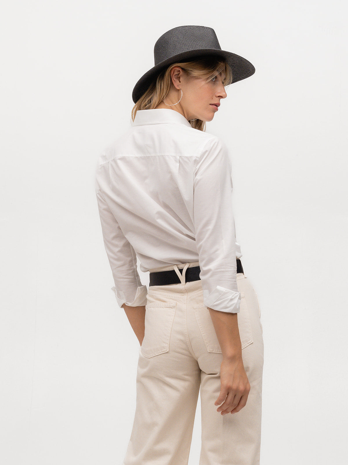 Our menswear inspired Weekend Shirt in a intoxicating white cotton/linen blend perfect for Spring/Summer.