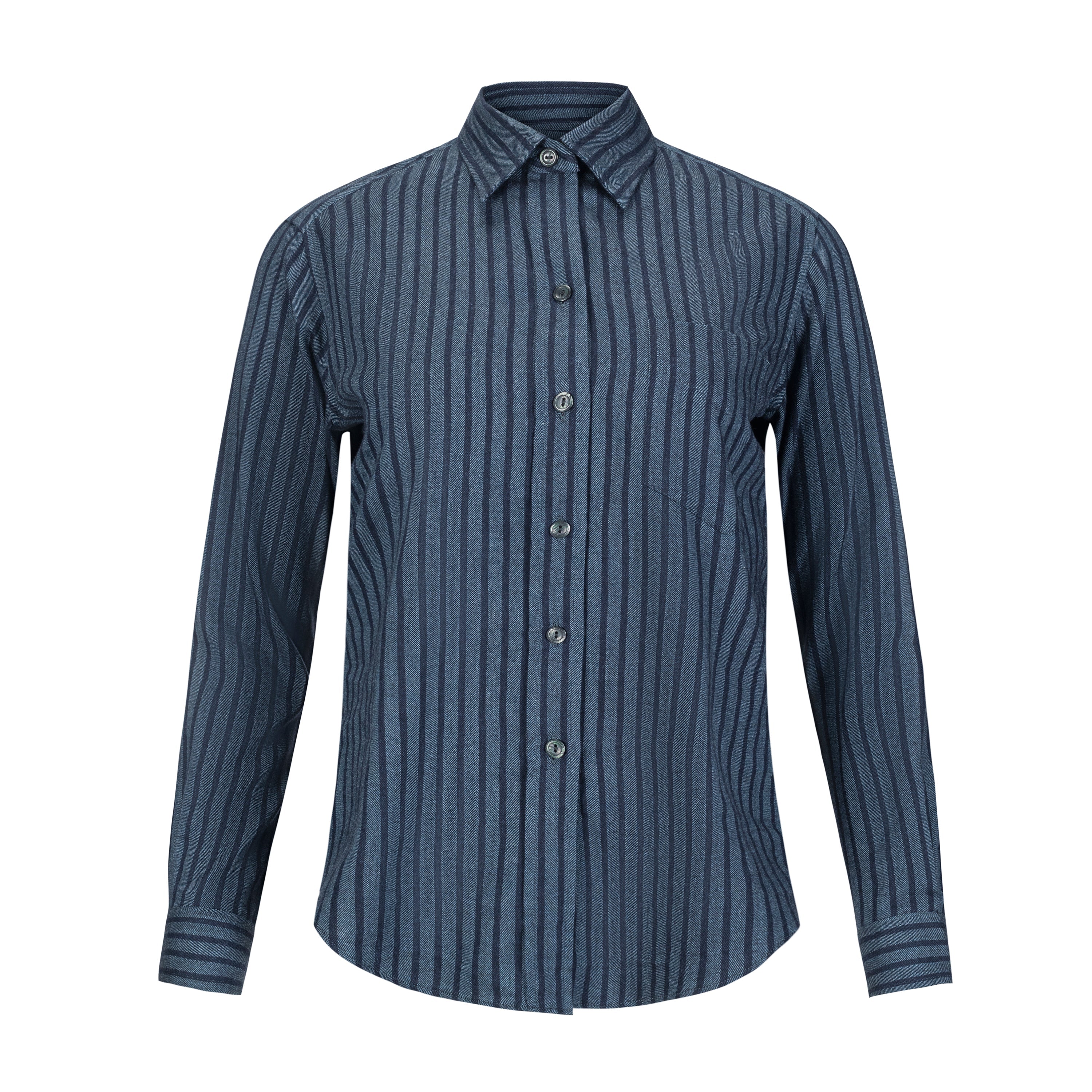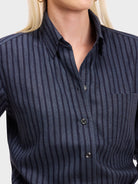 Our menswear inspired Weekend Shirt in a dark blue on navy uneven stripe.