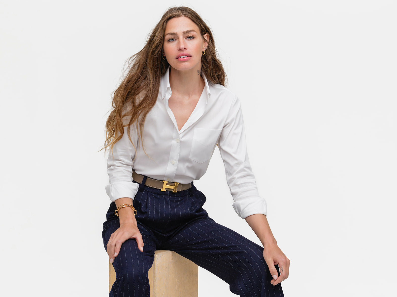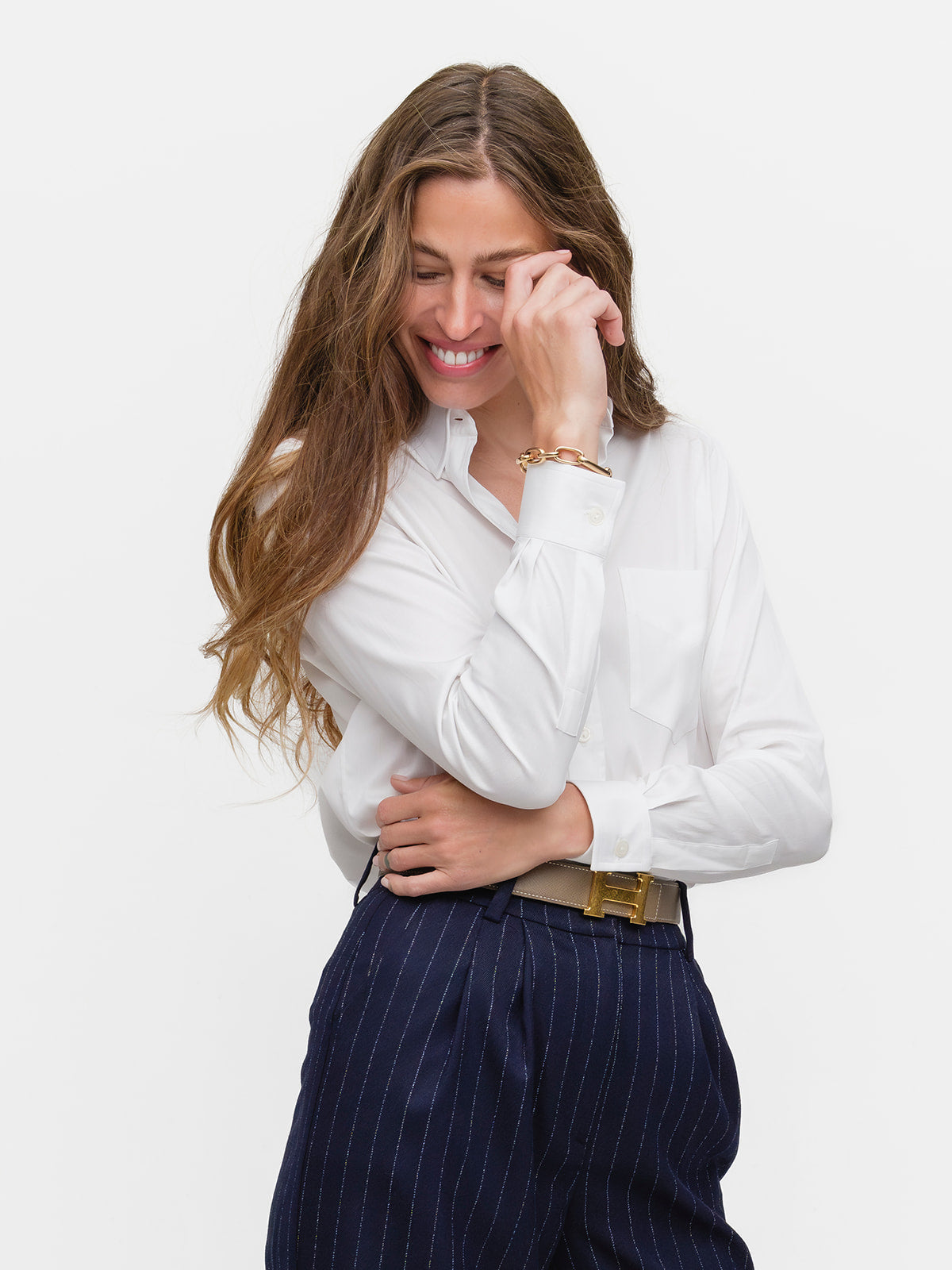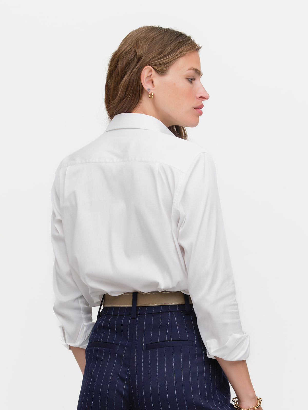 Our menswear inspired Weekend Shirt in a extraordinary white stretch pique.