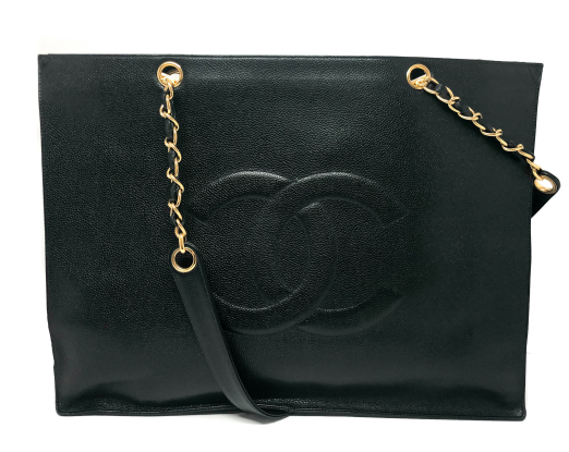 Authentic Chanel Vintage Black Caviar Jumbo Tote