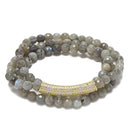 This bracelet is made on a very sturdy elastic cord and it stetches to wrap three times around your wrist.