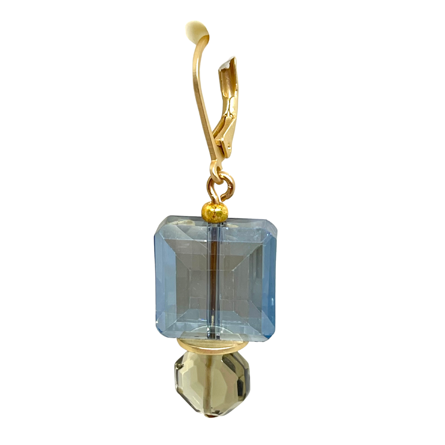 Blue Square Crystal And Smoke Topaz Hexagon Lever Back Earrings