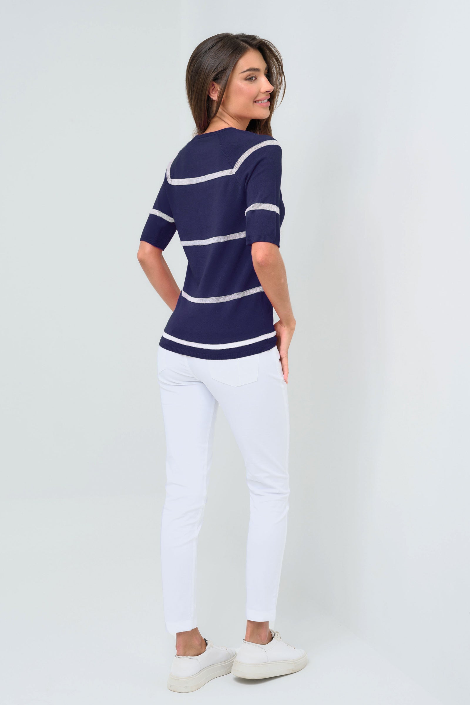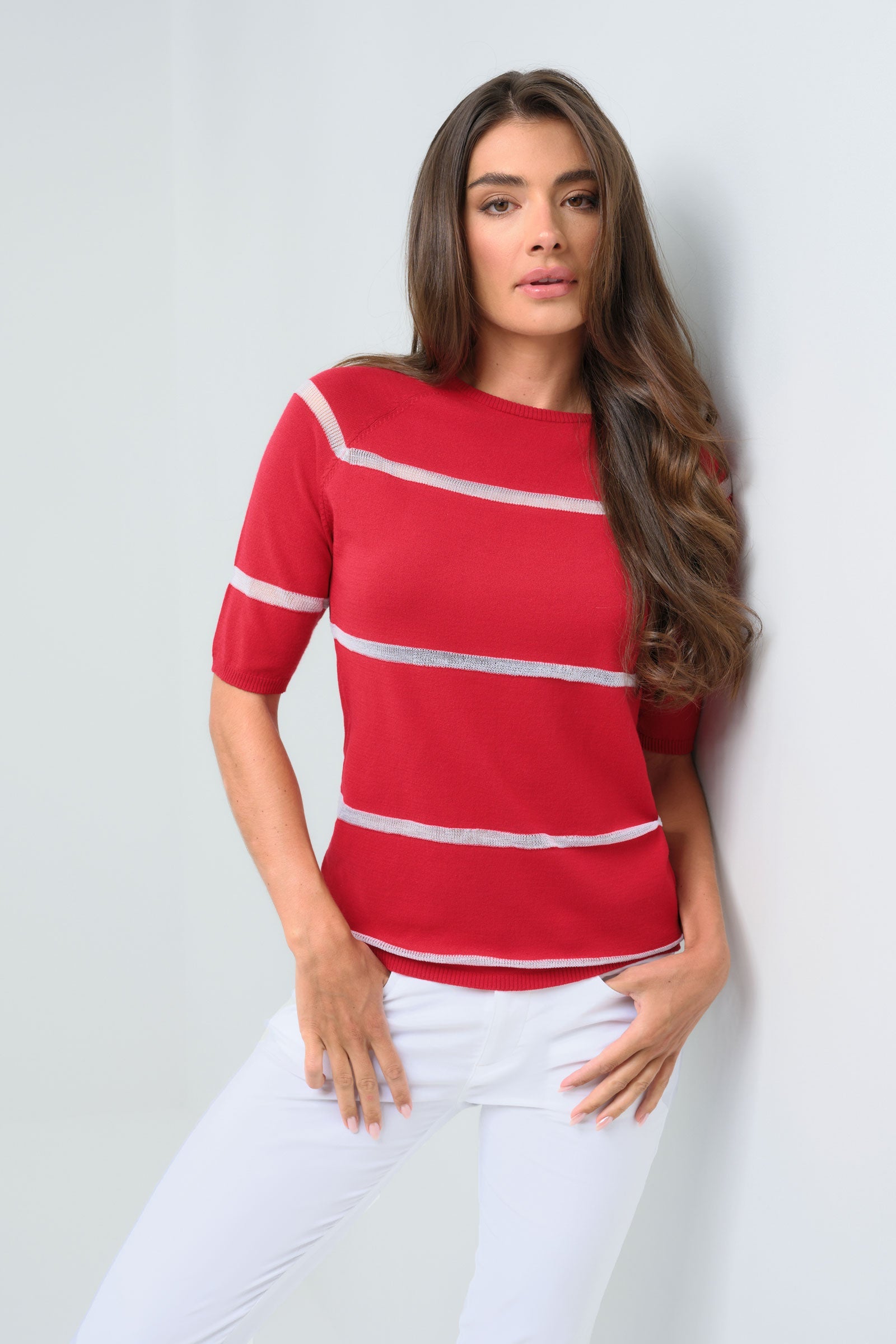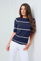 Get ready for summer with our Campbell Pullover Top! Featuring a flattering 3/4 sleeve and bold sheer stripes, this top will have you looking and feeling cool and confident. Embrace the season with our playful and stylish design.