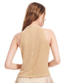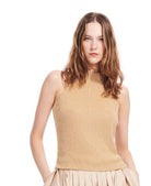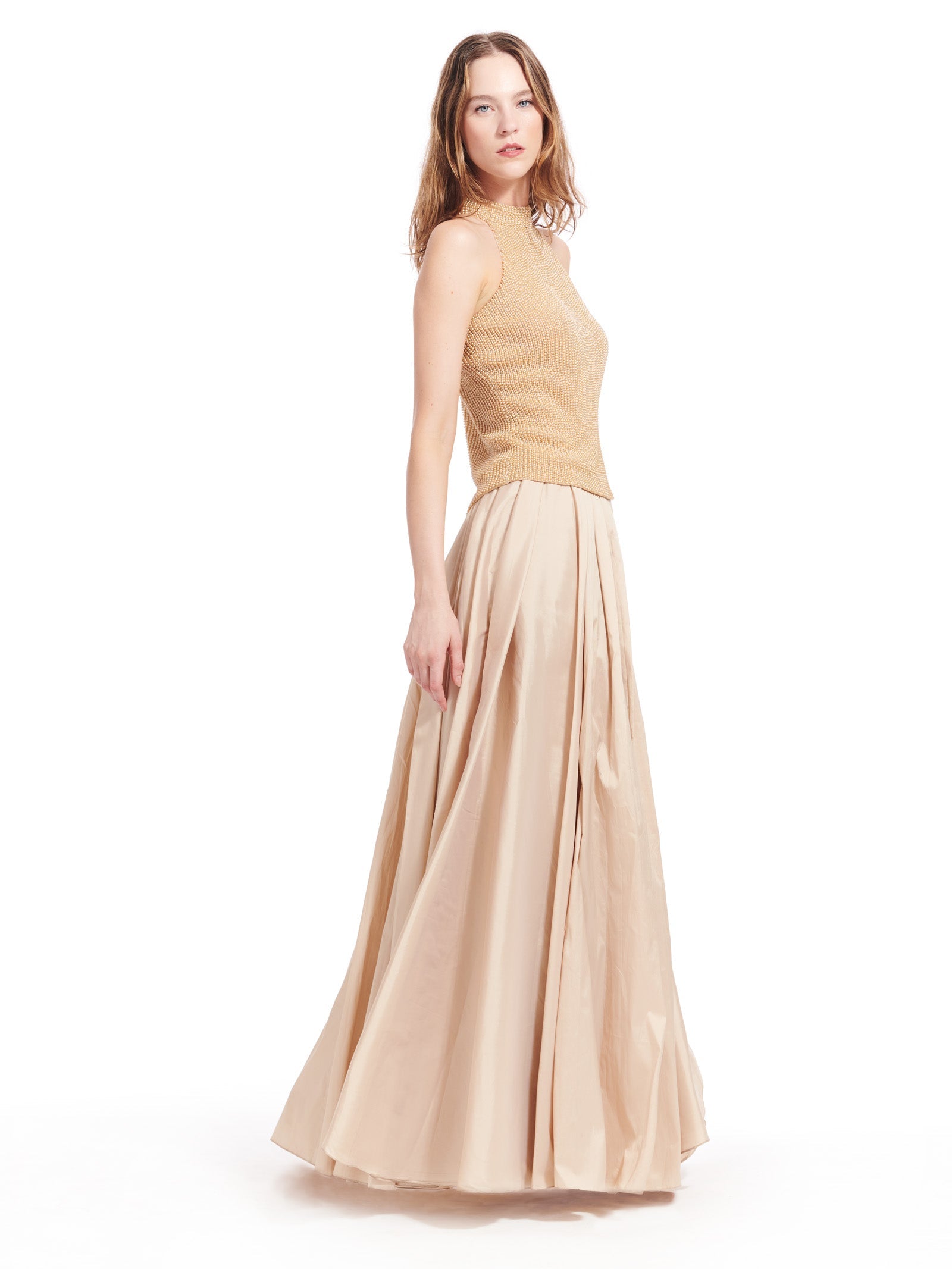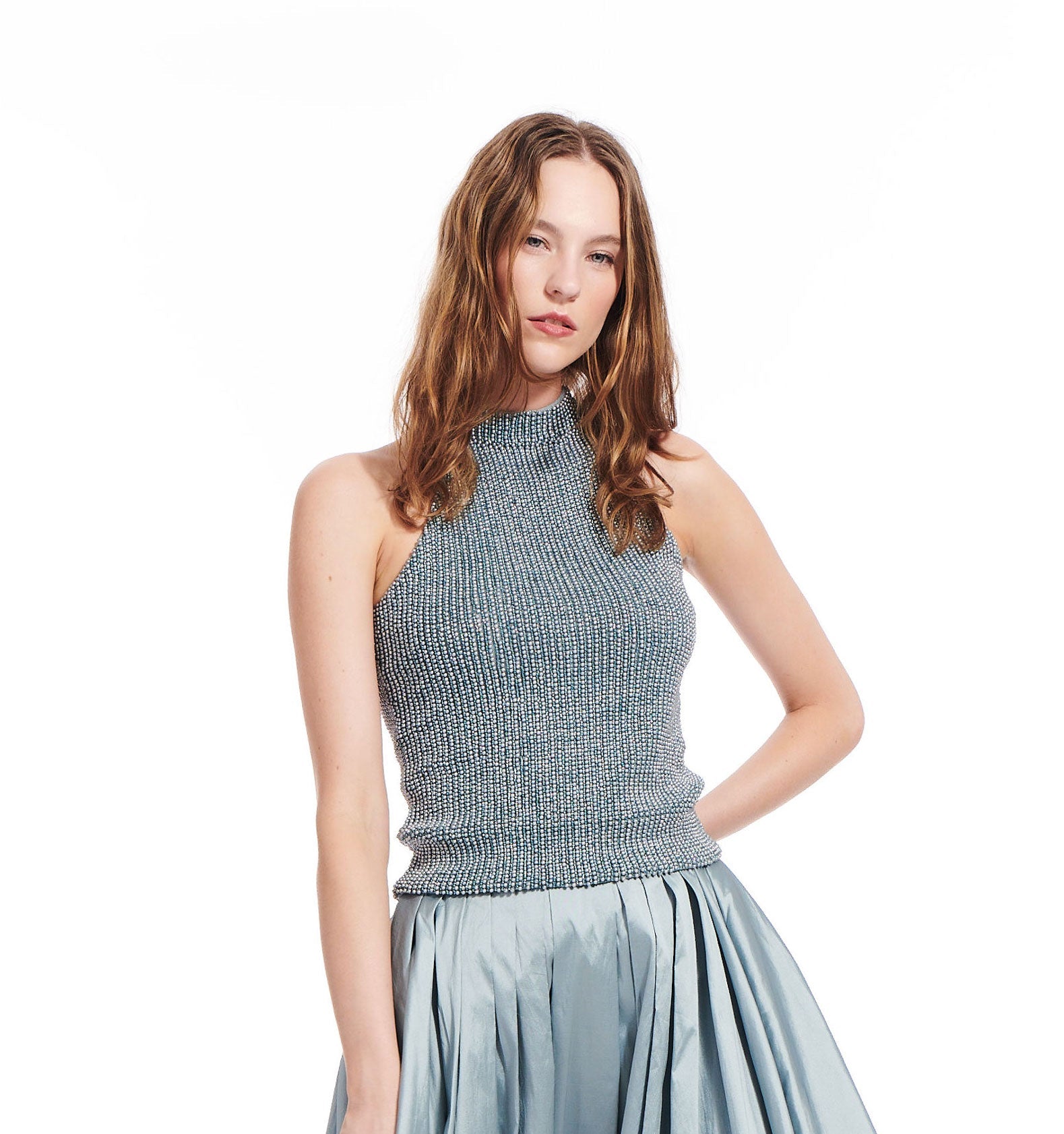 CHAMPAGNE PEARL ENCRUSTED SLEEVELESS MOCK NECK
