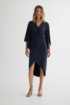 Fall in love with this draped jersey dress. The elegant sleeves and side bow will add a delicate touch to your outfit.