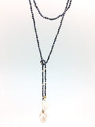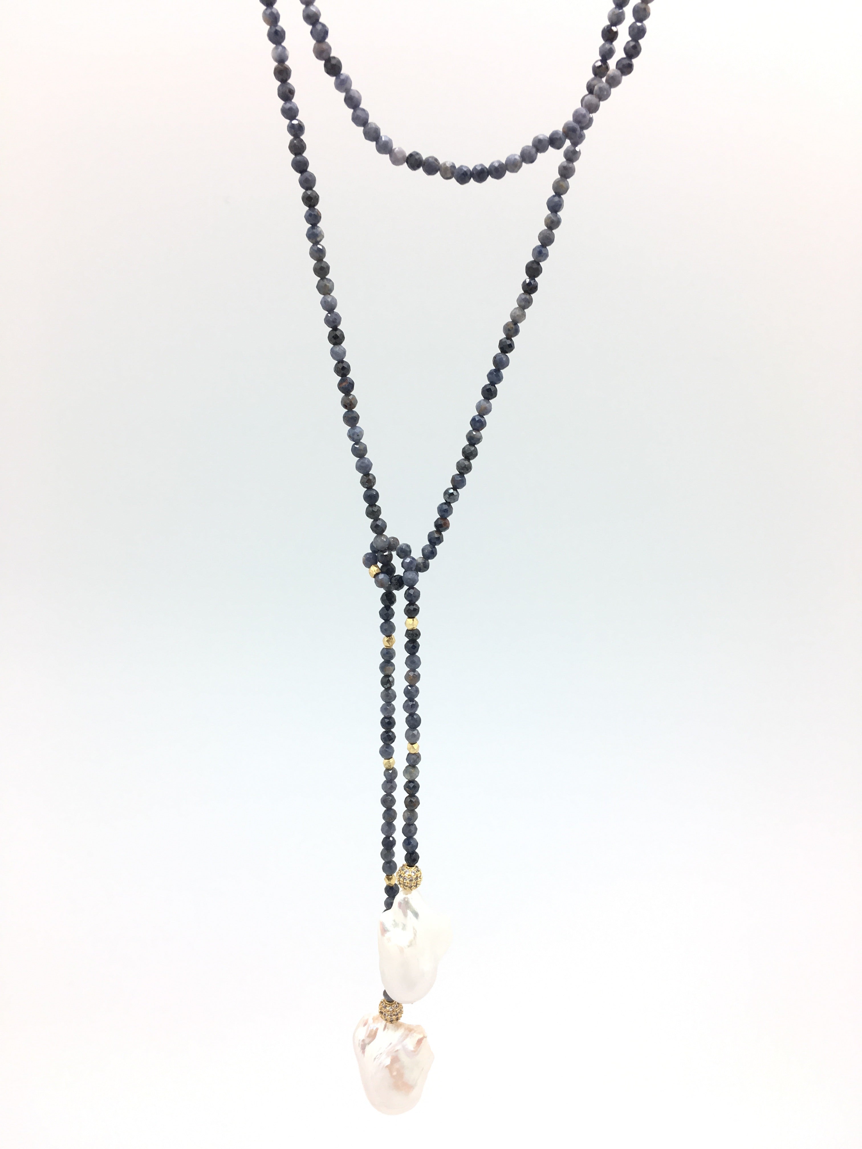 Iselia deluxe lariat, blue sapphire/baroque pearls
