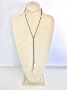 Wonderful lariat with faceted 3 mm blue sapphire beads with gold findings and baroque pearl ends. Can be worn numerous ways.