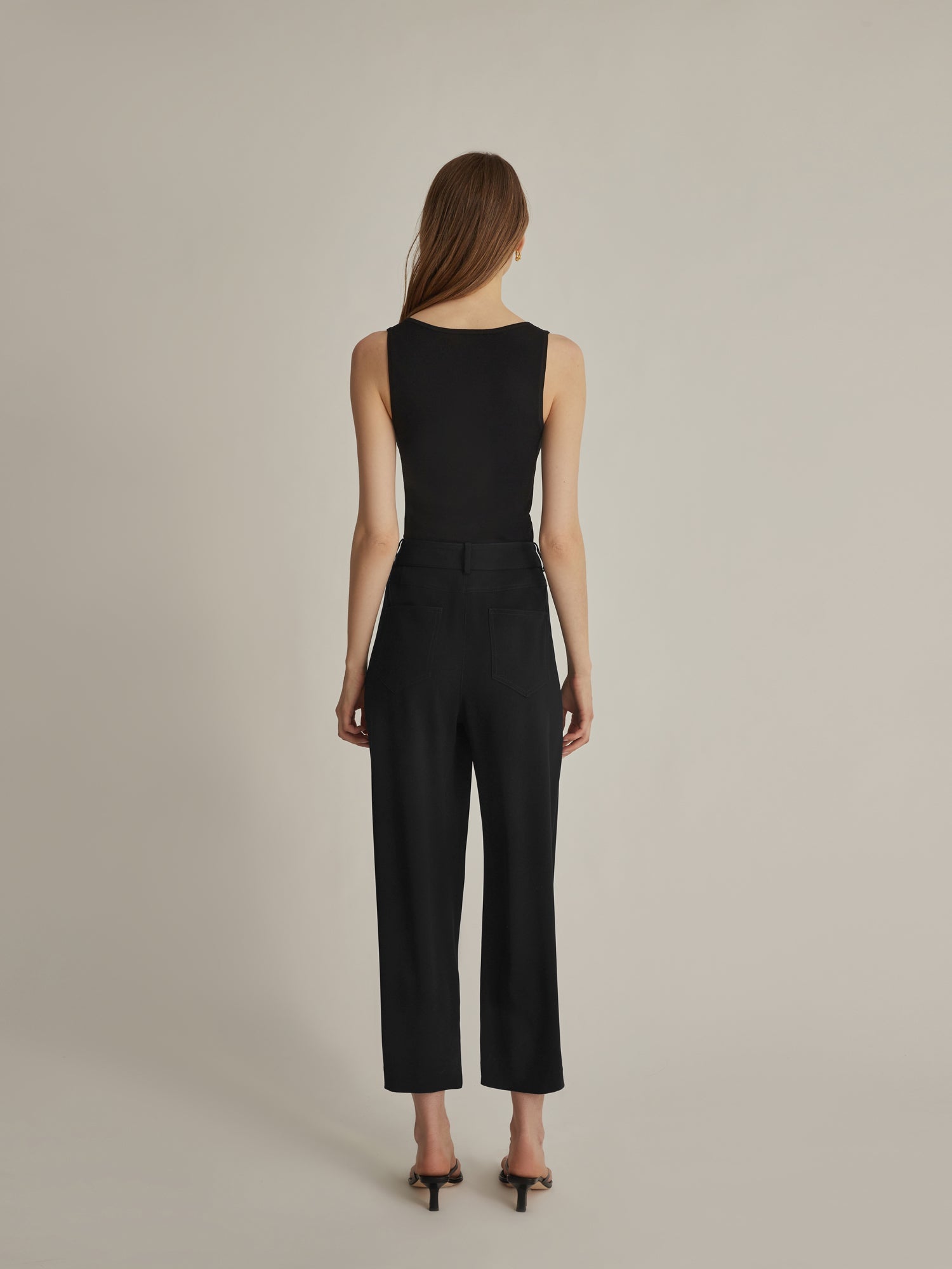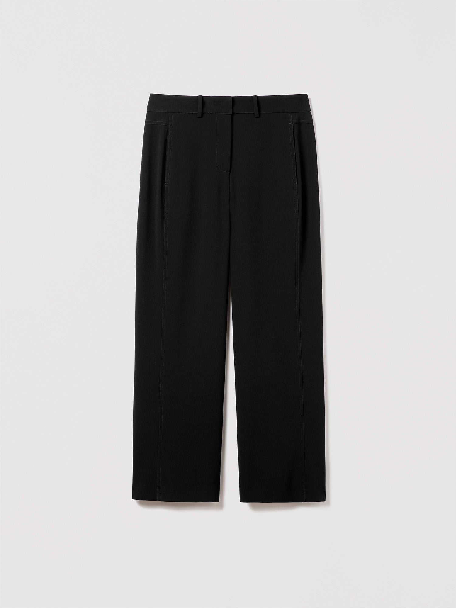 Cropped wide leg pant in Satin Back Crepe, high-waisted