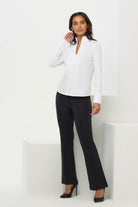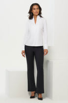 Elevate your everyday look with the Matilda Top where chic sophistication meets luxurious comfort. Designed with a structured Mandarin collar and sumptuous soft sleeves, this top effortlessly blends style and ease. The contrasting mixed-media design features a poplin front for a polished look, while the cotton back and sleeves keep it soft and breathable. The invisible button front adds a refined touch, while the slim fit and mid-hip length create a flattering silhouette that transitions seamlessly from day to night. Crafted from premium cotton, modal, and a hint of stretch, it’s as comfortable as it is stylish.
