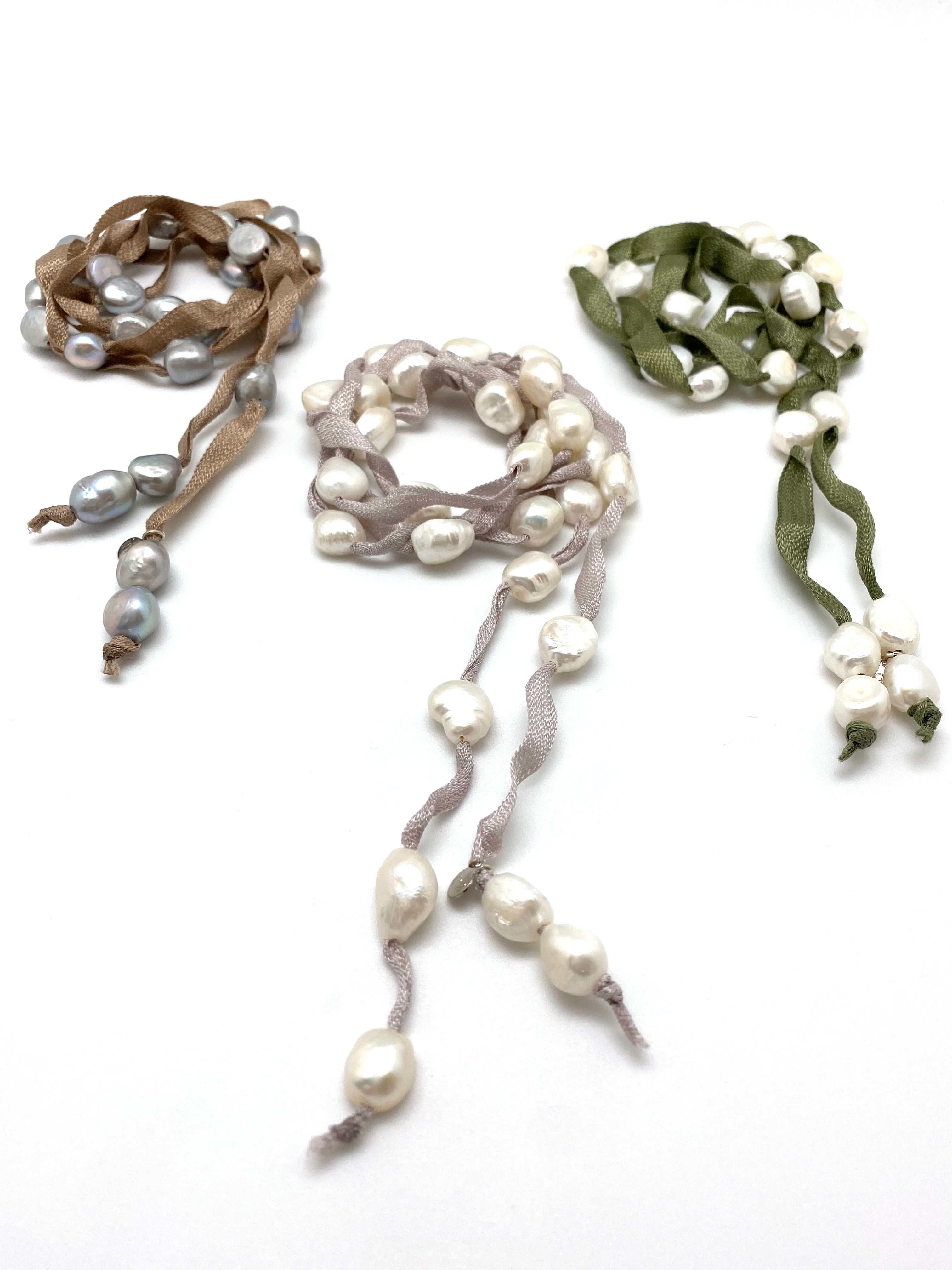 Fun lariat made using oversized freshwater pearls. Can be worn long or doubled up.
